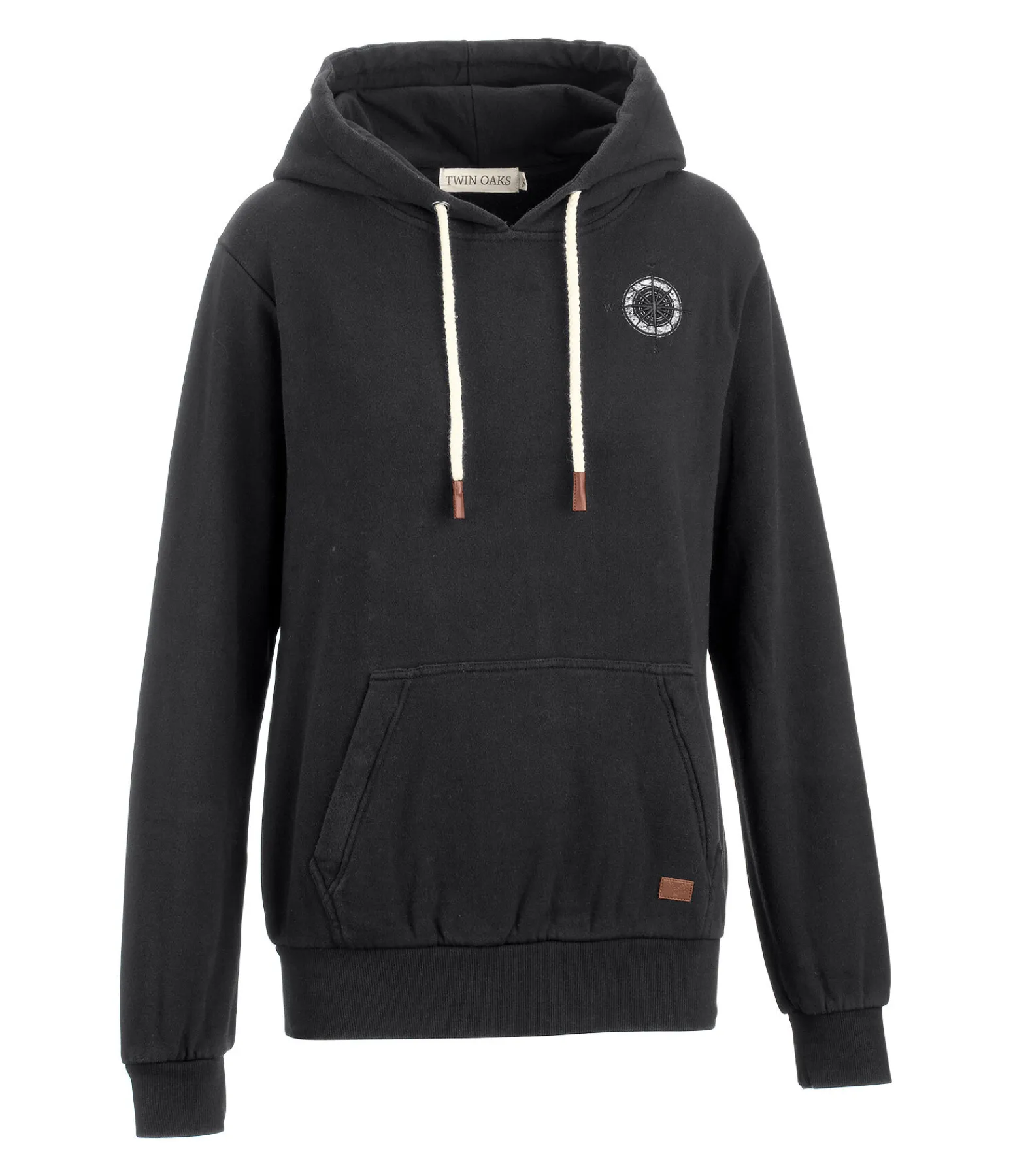 Sweat à capuche. Coupe oversize. Poche kangourou zippée pour garder ses effets personnels en toute sécurité. Capuche ajustable par cordon de serrage torsadé en coton avec extrémités en cuir synthétique. Motif boussole brodé sur la poitrine. Finition en bord-côte sur le bas des manches et l’ourlet. Intérieur molletonné doux. 100 % coton.