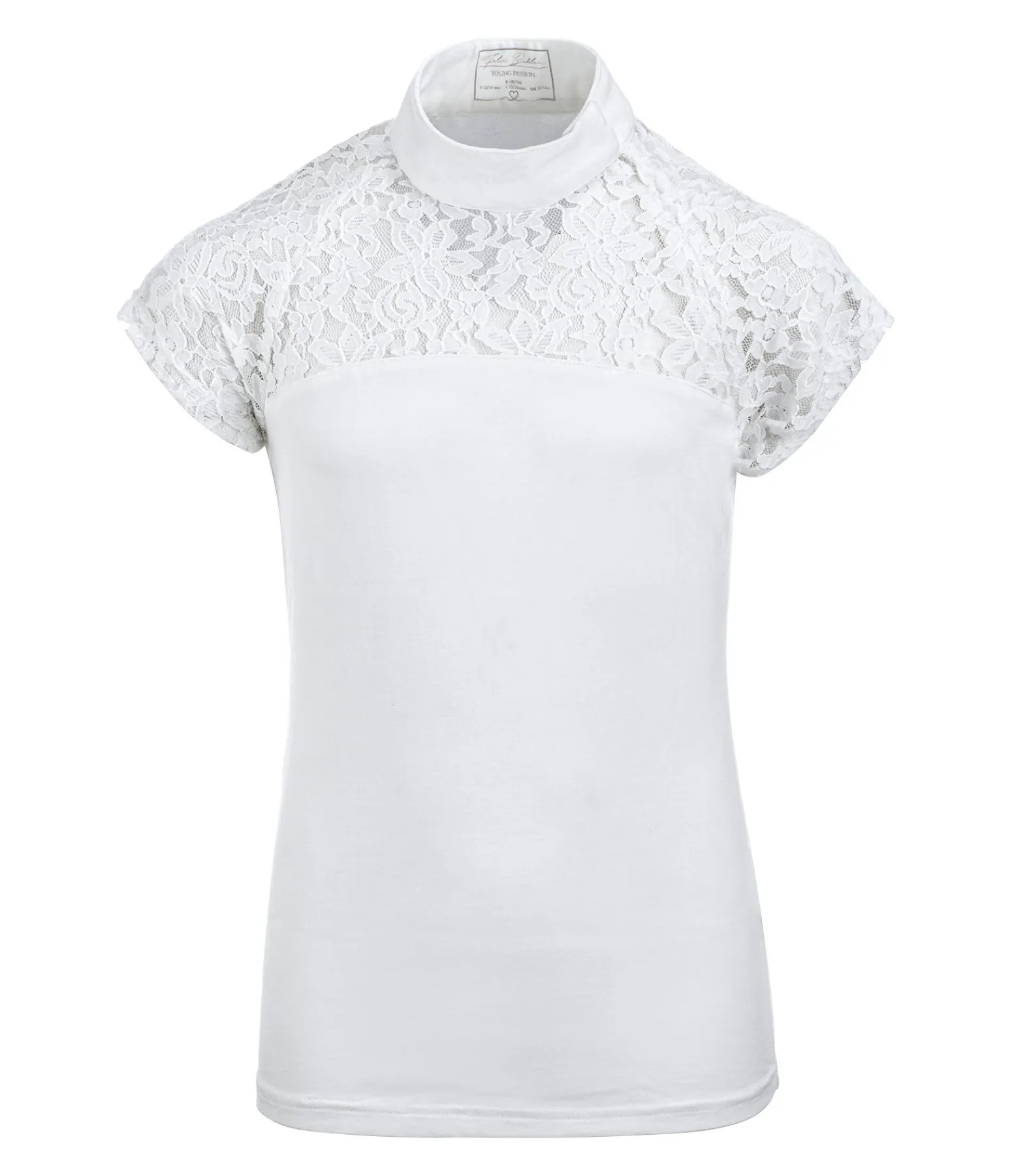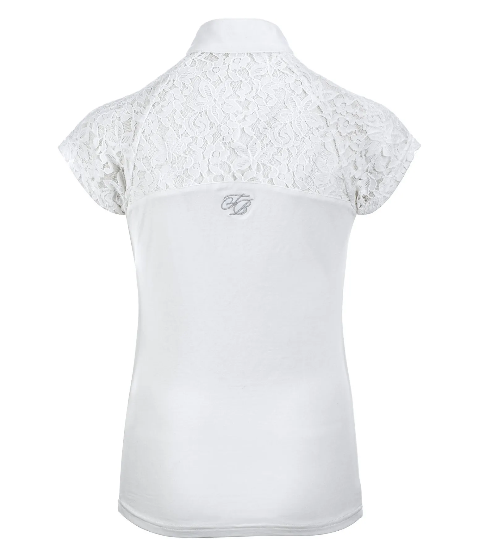 T-shirt de concours en jersey de coton extensible. Inserts et manches raglan en dentelle fine. Col officier avec fermeture à glissière dissimulée. Matière respirante. Logo Felix Bühler argenté brodé au dos. 95 % coton, 5 % élasthanne.