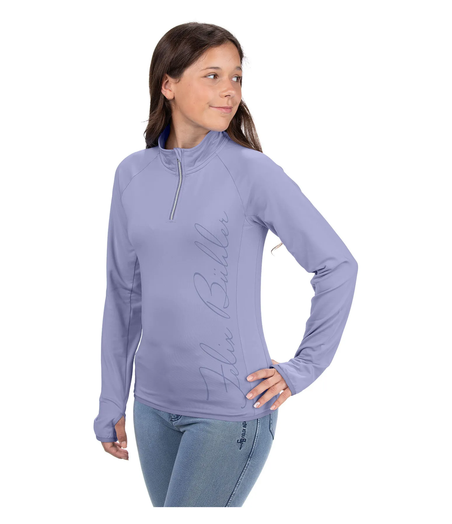 T-shirt à manches longues, technique et sportswear. Col montant. Matière respirante. Séchage rapide. Intérieur molletonné. Inscription Felix Bühler à l’avant. Fermeture à glissière rose doré avec protège-menton. Bordure élastiquée sur la taille et le bas des manches. Poignets avec passe-pouce. 92 % polyester, 8 % élasthanne.