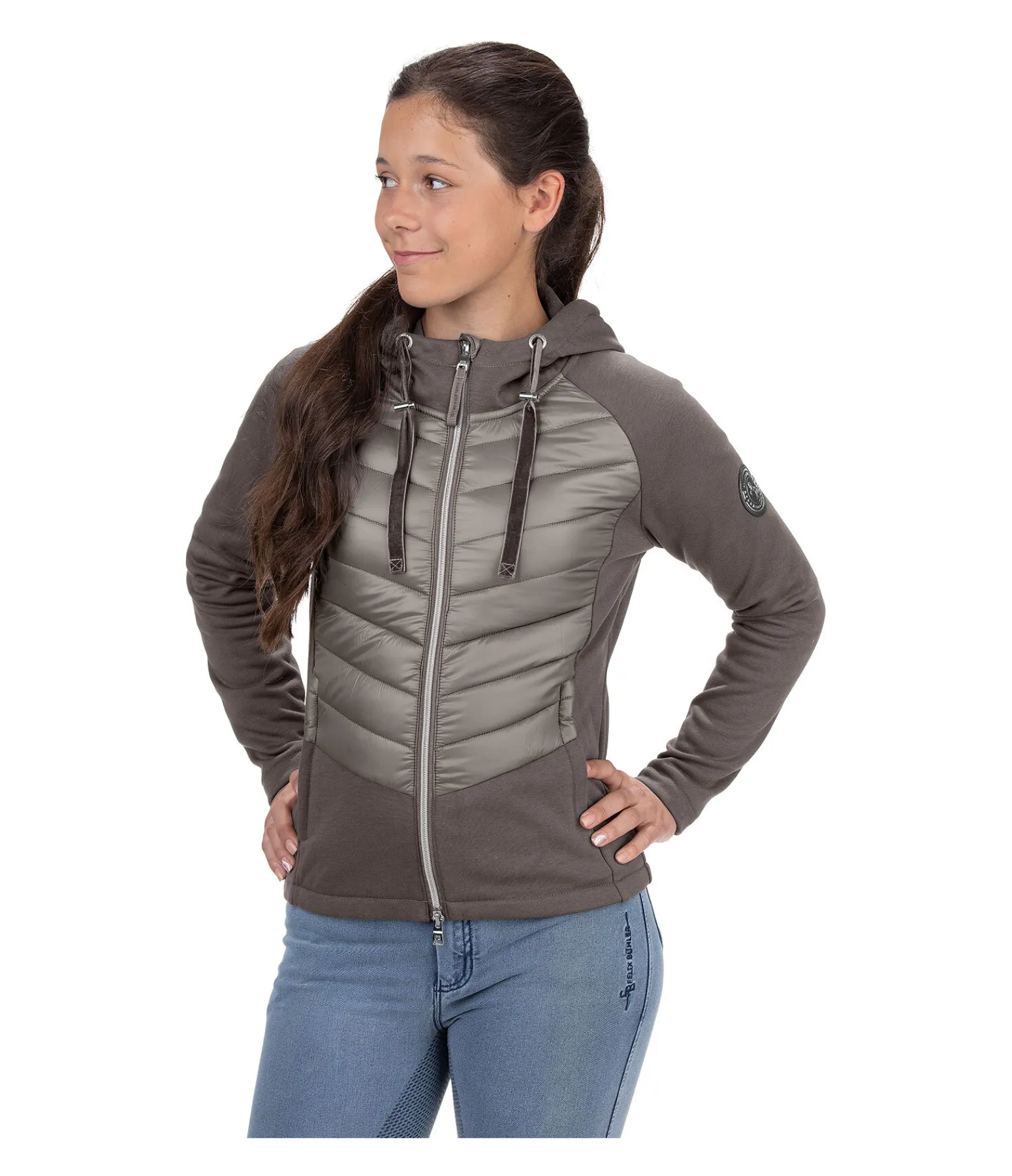 Veste d’équitation tendance pour enfant dans une combinaison parfaite de coton mélangé stretch doux et de nylon naturellement brillant, matelassé et rembourré. Le coton mélangé stretch sur les côtés, les manches et le dos est respirant et molletonné à l’intérieur. Col haut avec capuche réglable pouvant être fixée dans le dos. Badge Felix Bühler chic sur la manche, 2 poches zippées devant et fermeture à glissière double sens avec sous-patte et protège-menton. Bas des manches et taille élastiqués. Matière principale : 64 % polyester, 36 % coton. Inserts matelassés 100 % nylon.