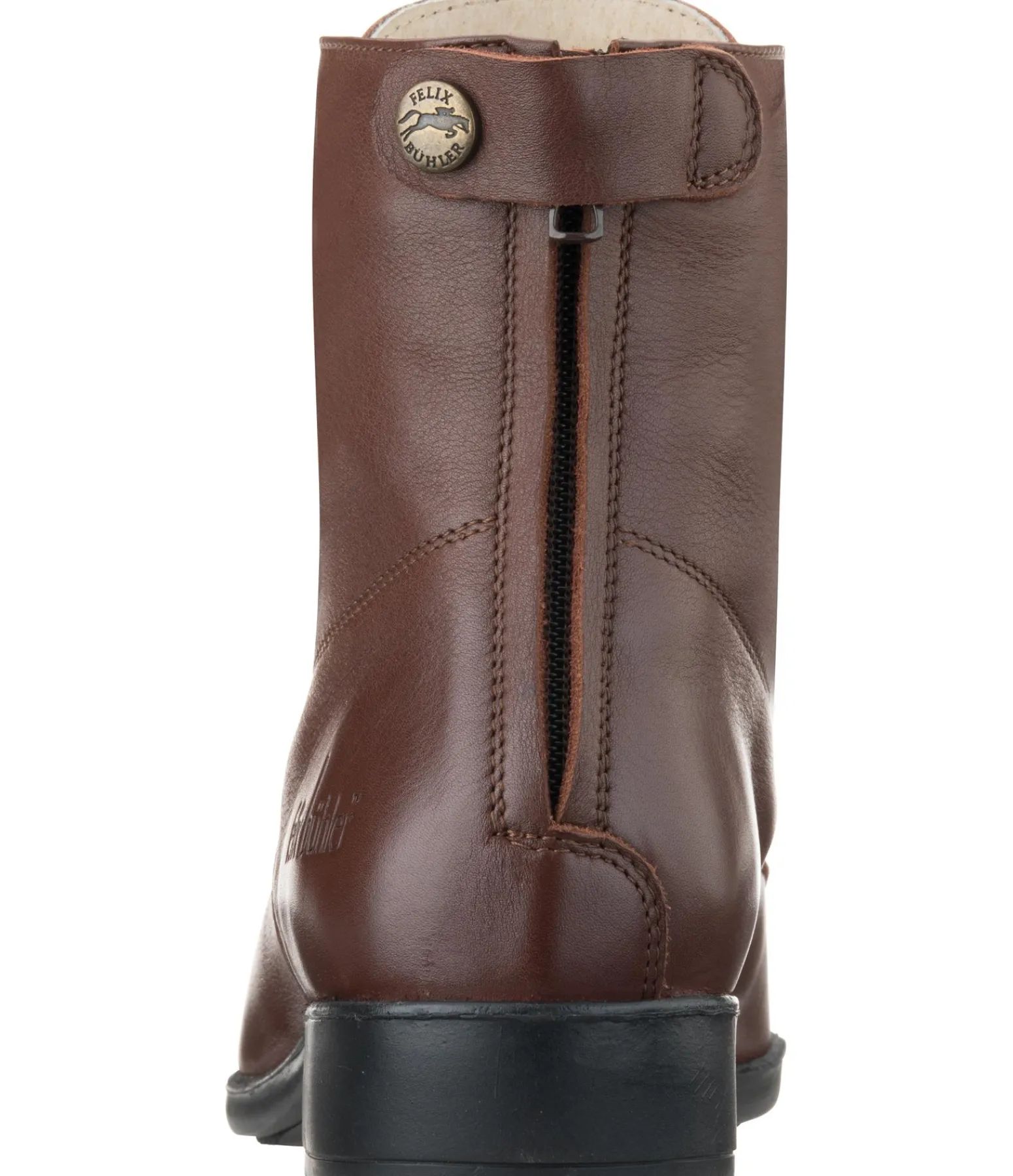 Élégantes bottines à lacets en cuir de vachette italien pleine fleur. Fermeture à glissière à l’arrière pour faciliter l’enfilage et retrait. Doublure intérieure souple en cuir de porc. Bout légèrement carré. Semelle extérieure résistante à l’abrasion. Assise plantaire amortissante. Semelle intérieure amovible. Fabriquées au Portugal.