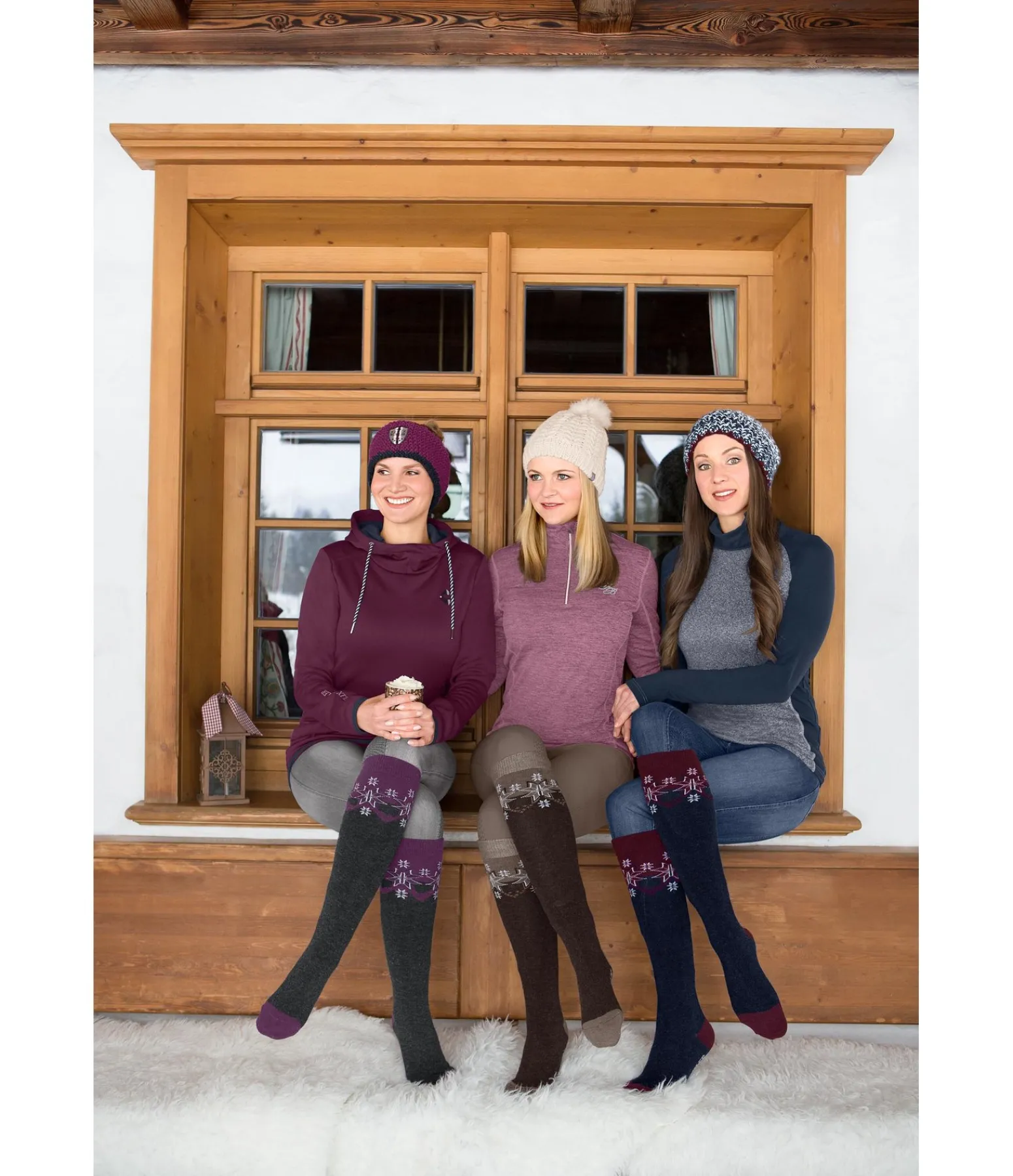 Chaussettes hautes confortables et chaudes en mélange de matières techniques, ornées d’un motif flocon de neige. De par leur haute teneur en laine mérinos, elles sont respirantes et évitent les odeurs persistantes. 28 % laine, 47 % polyacrylique, 14 % polyester, 10 % viscose, 1 % élasthanne. Tailles: 1 (35 – 38) ou 2 (39 – 42).