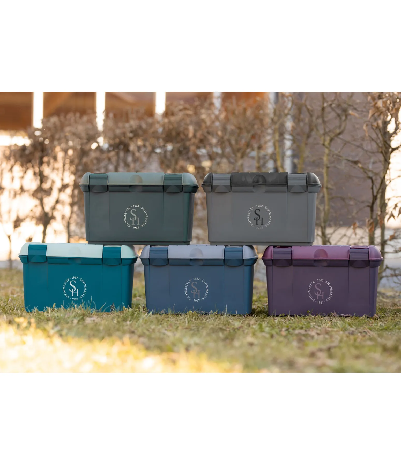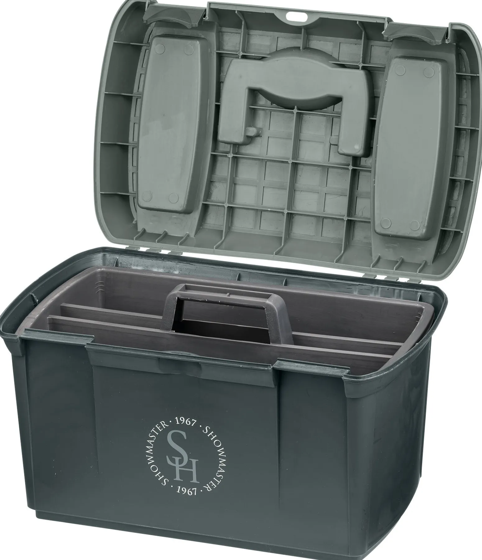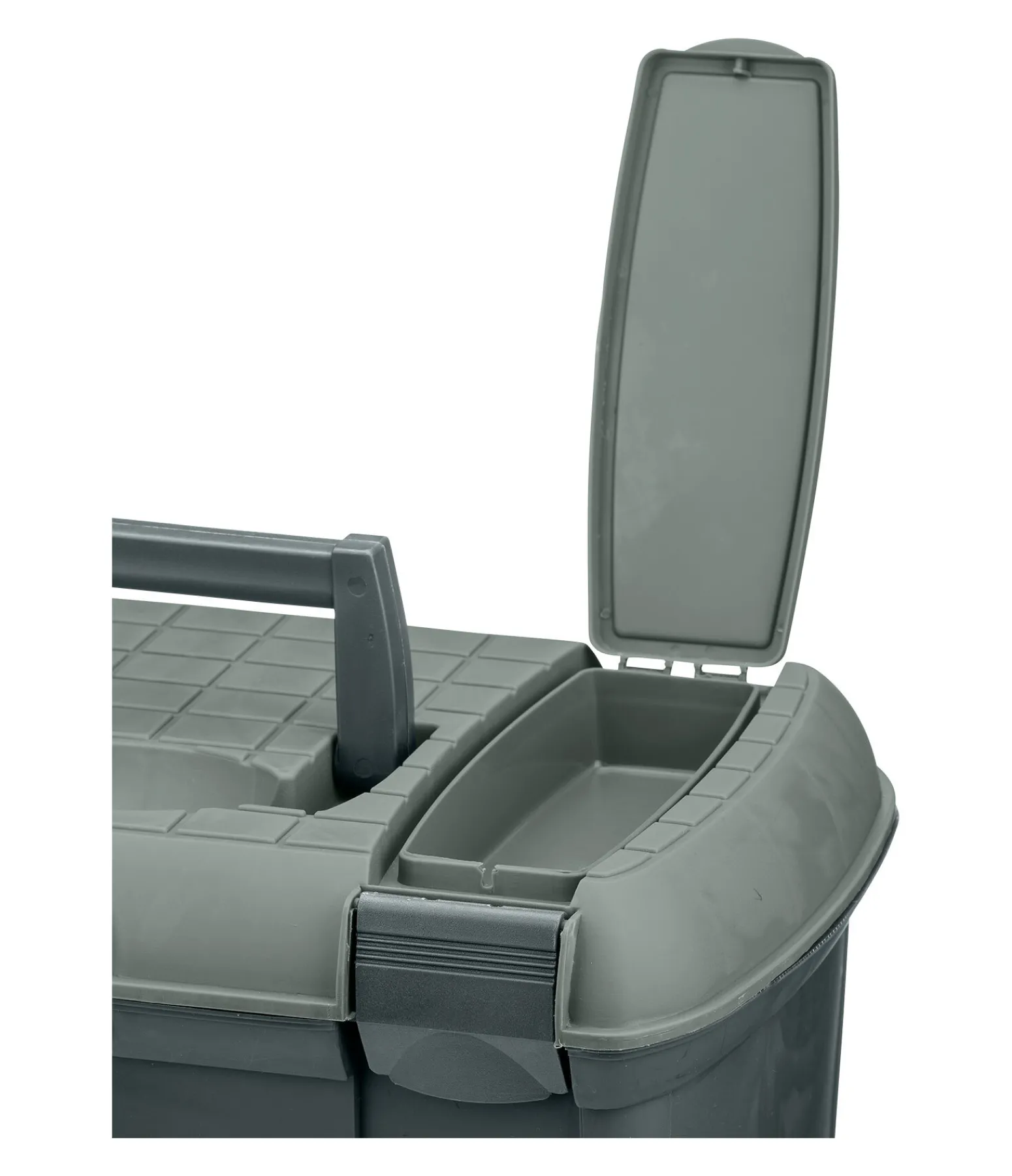 Coffre de pansage solide en plastique avec intérieur compartimenté. Compartiment pour petits accessoires amovible. Verrouillable. Cadenas non inclu. 39 x 25 x 25 cm.