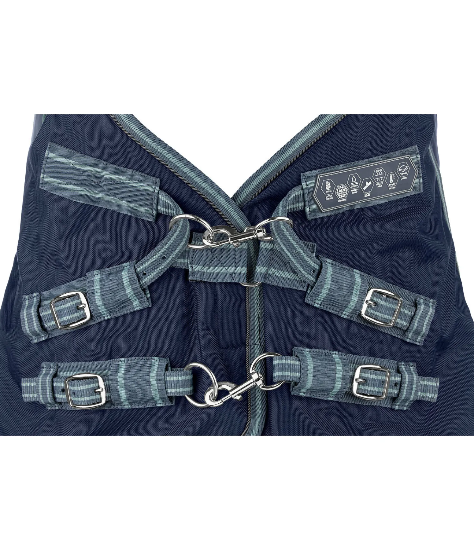 Couverture d’extérieur fonctionnelle et polyvalente dans une coupe classique (Regularneck). Matière 1 680 deniers particulièrement résistante. Grande imperméabilité (5 000 mm). Comparé au polyester, le nylon est nettement plus doux et présente des reflets satinés. Matière beaucoup plus extensible que le polyester pour une meilleure résistance à la déchirure. Sans garnissage. Empiècements extensibles et déperlants en softshell au niveau des épaules et de l’encolure. Grands plis d’aisance pour une liberté de mouvement optimale, permettant d’éviter les pressions. Rembourrage intérieur généreux pour minimiser davantage les pressions au niveau du garrot. Fermeture de poitrail réglable équilibrée en 3 points, constituée de 2 anneaux et 2 mousquetons et d’une patte auto-agrippante supplémentaire. Les mousquetons peuvent être facilement remplacés si besoin. Doublure lisse protégeant la robe. Sursangles croisées réglables et anneaux permettant la fixation de courroies de cuisses (non incluses). Courroie de queue réglable en longueur et rabat de queue avec bandes et passepoil réfléchissants sur le pourtour. Avec fixations supplémentaires pour un couvre-cou optionnel (article 422 669).