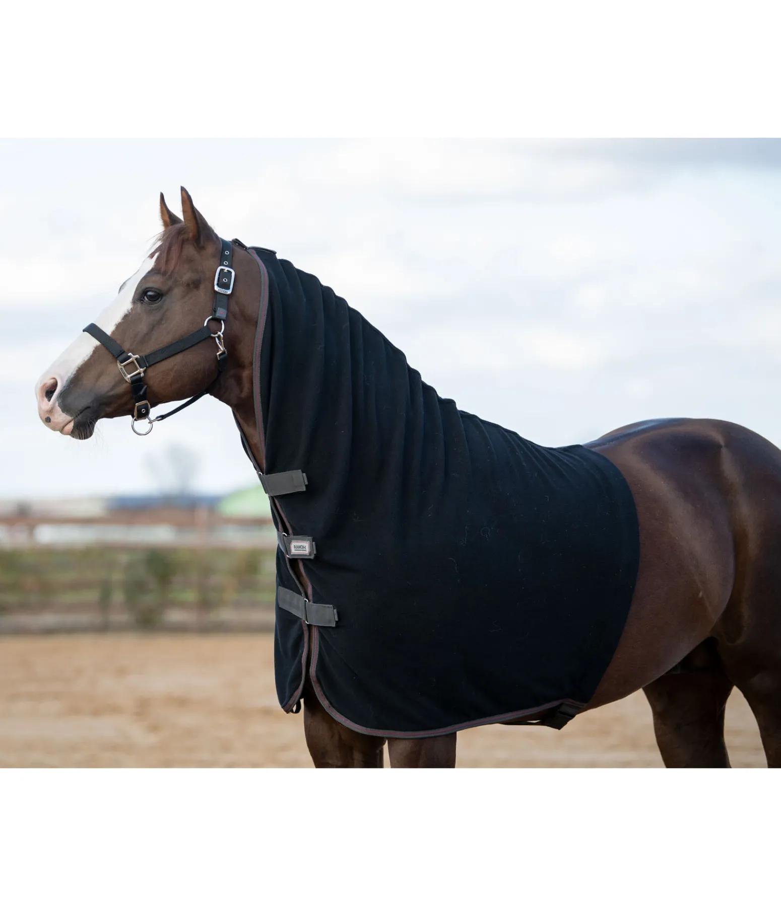 Couvre-cou respirant en polaire douce. Idéal pour les chevaux qui transpirent beaucoup de l’encolure. À combiner avec une chemise séchante ou à utiliser seul. 3 fermetures à l’avant et sangle ventrale pour un maintien optimal. 100 % polyester.