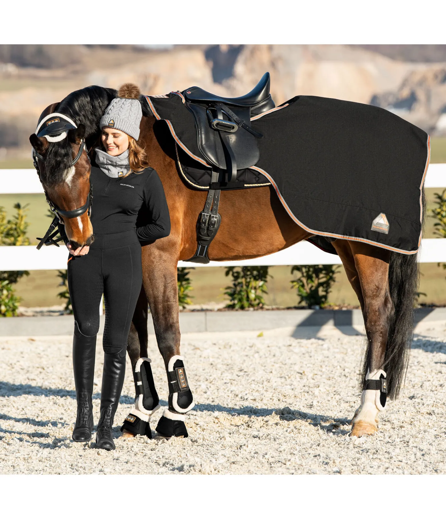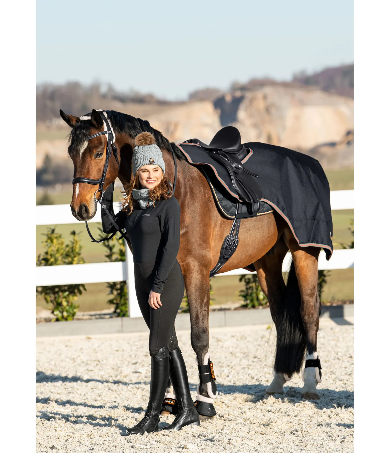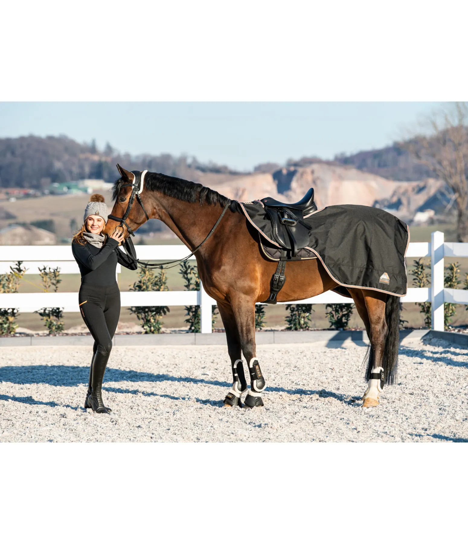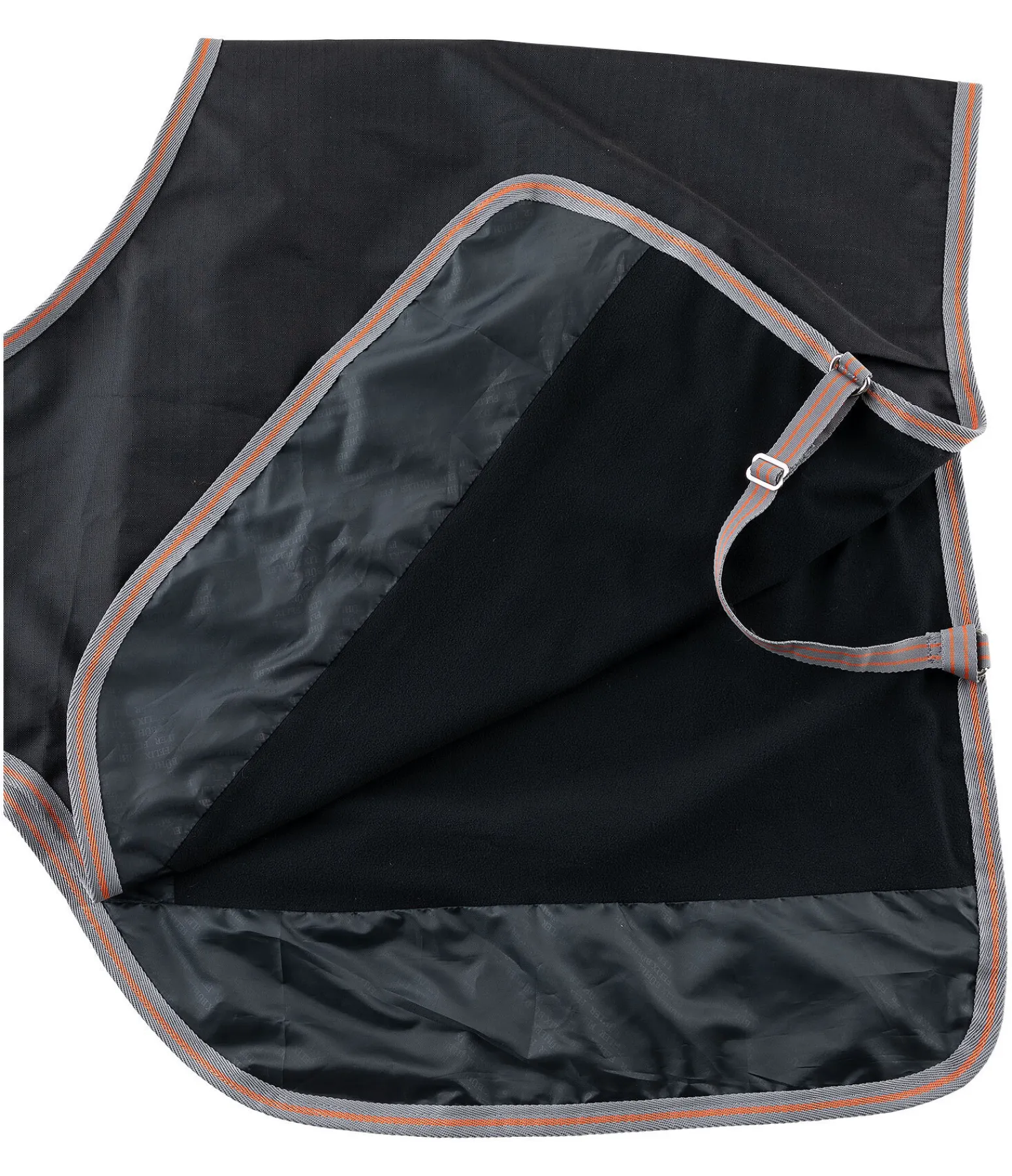 Couvre-reins imperméable (3 000 mm) et respirant (3.000 g/m2/24h) en tissu Ripstop 600 deniers résistant à la déchirure. Les fibres de céramique intégrées à la doublure intérieure en polaire chaude stimulent la circulation sanguine au niveau des reins. Peut favoriser la décontraction à cheval et soulager ou prévenir les tensions dans le dos. Découpe conçue pour une selle anglaise. Large patte auto-agrippante au niveau du garrot pour une fixation facile. Courroie de queue réglable incluse. Nous déconseillons aux femmes enceintes ainsi qu’aux animaux en gestation l’utilisation des articles contenant des fibres de céramique. 100 % polyester.