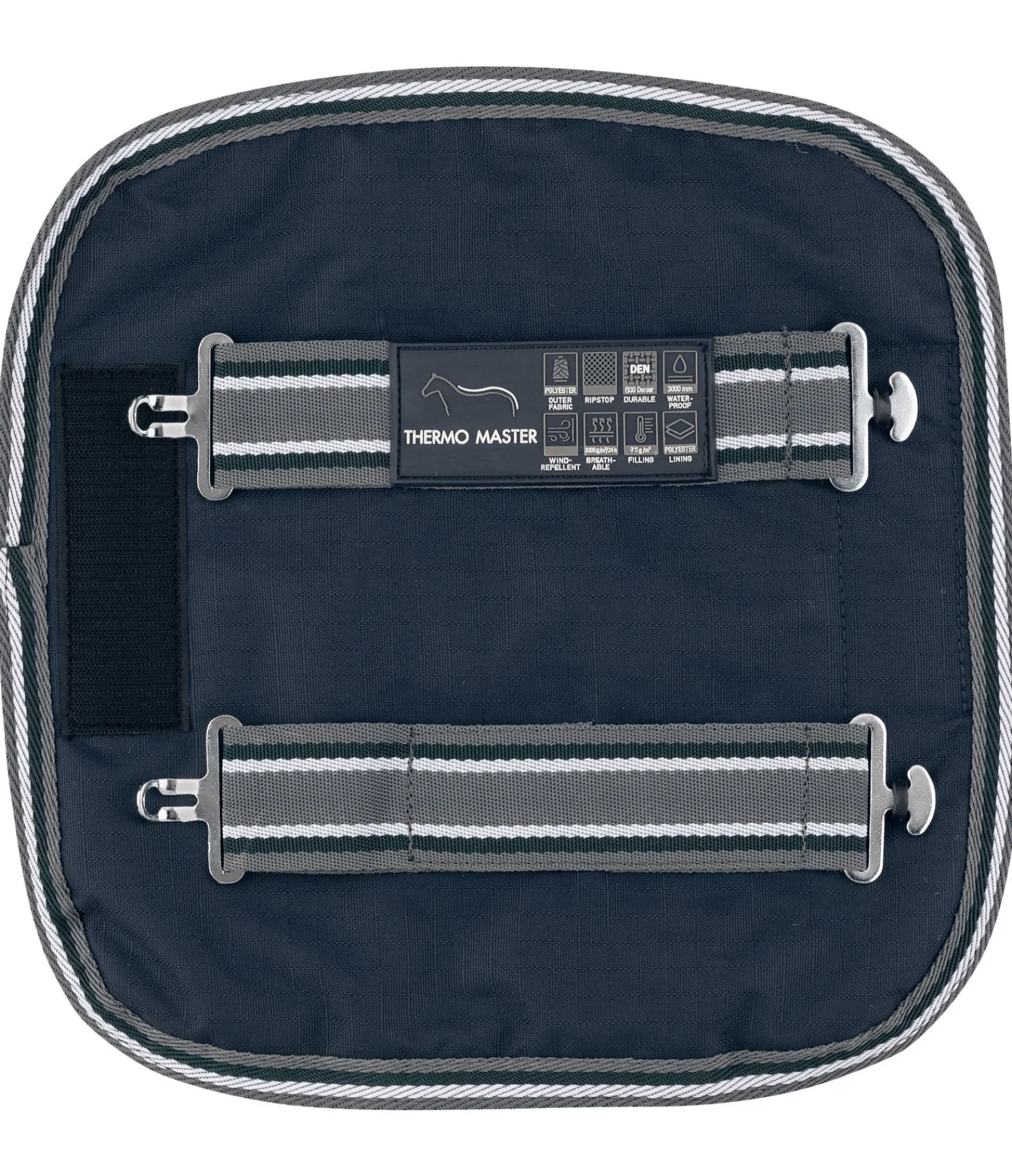 Extension de poitrail adaptée aux couvertures d’extérieur Kadir IV (Art. 422 458, 422 459, 422 460, 422 461) et Kalina II (Art. 422 462, 422 463, 422 465) en matière Ripstop 600 deniers, imperméable (3.000 mm) avec garnissage léger 75 g. Double fermeture de poitrail avec crochets en T et patte auto-agrippante supplémentaire pour un maintien sûr. Doublure lisse satinée. 100 % polyester. Petit conseil : la petite extension peut aussi être fixée avec des couvertures plus grandes ! Choisis la taille 1 pour une extension supplémentaire d’env. 10 cm et la taille 2 pour une extension d’env. 25 cm. 100 % polyester. Taille 1 (85 – 125 cm), taille 2 (135 – 175 cm).