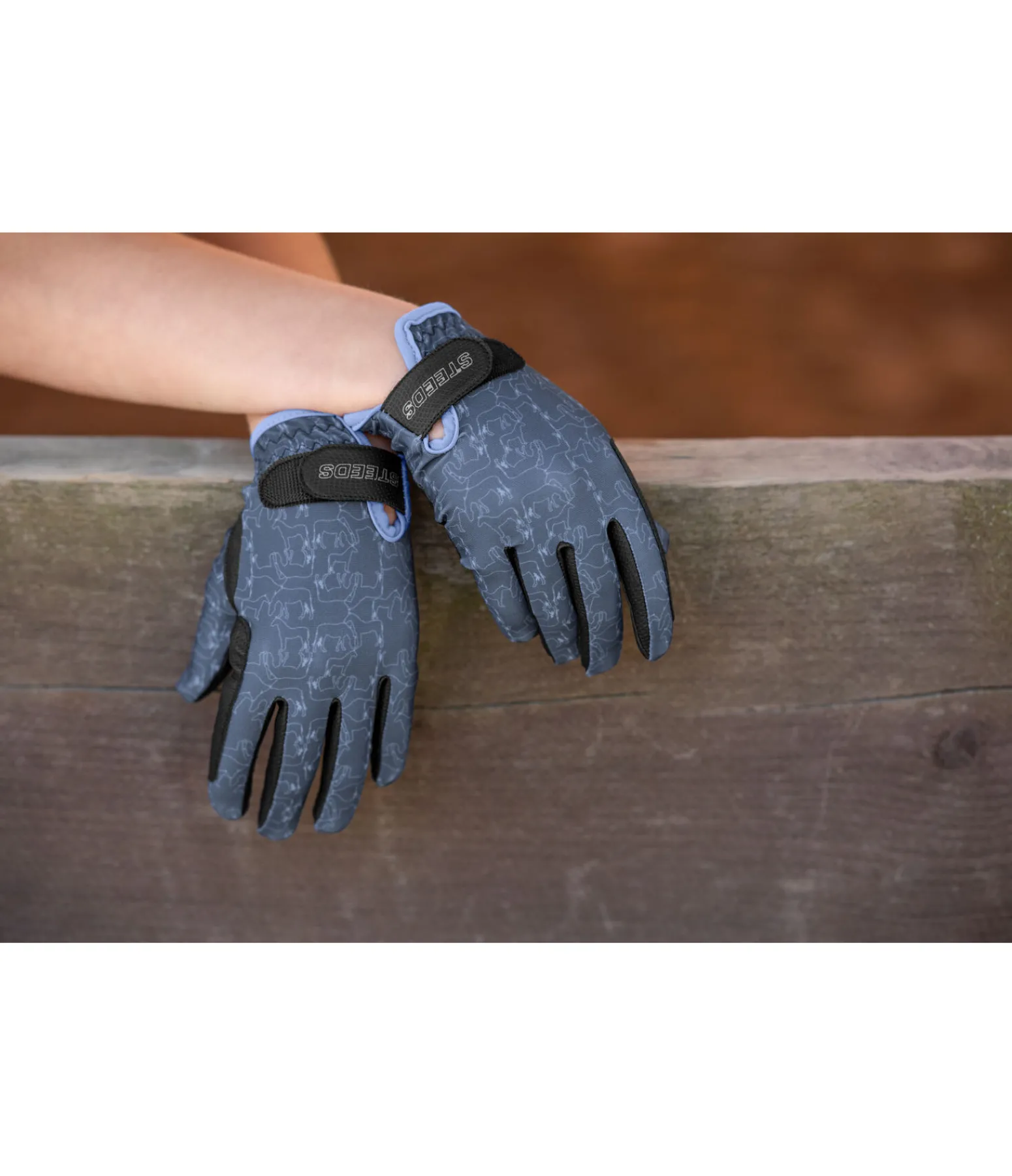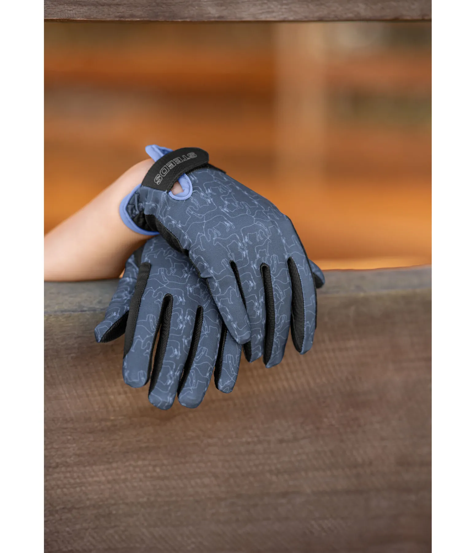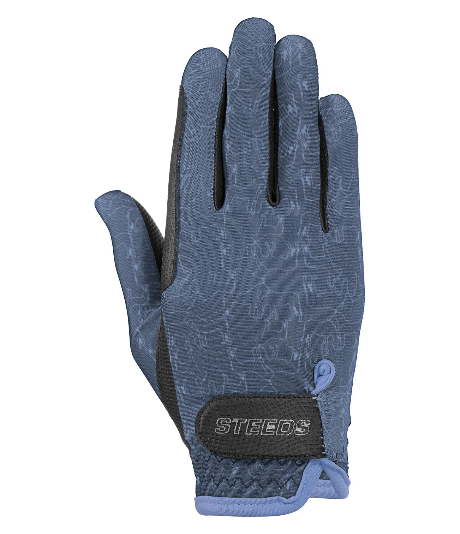 Gants d’équitation d’été légers et extensibles. Joli motif all-over cheval. Dos de la main en nylon doux. Paume en PU antidérapant. Renfort sur l’index pour éviter les irritations dues aux frottements. Fermeture par patte auto-agrippante avec logo STEEDS pour un ajustement optimal. Dessus : 82 % nylon, 18 % élasthanne. Paume: 51 % nylon, 49 % polyuréthane.