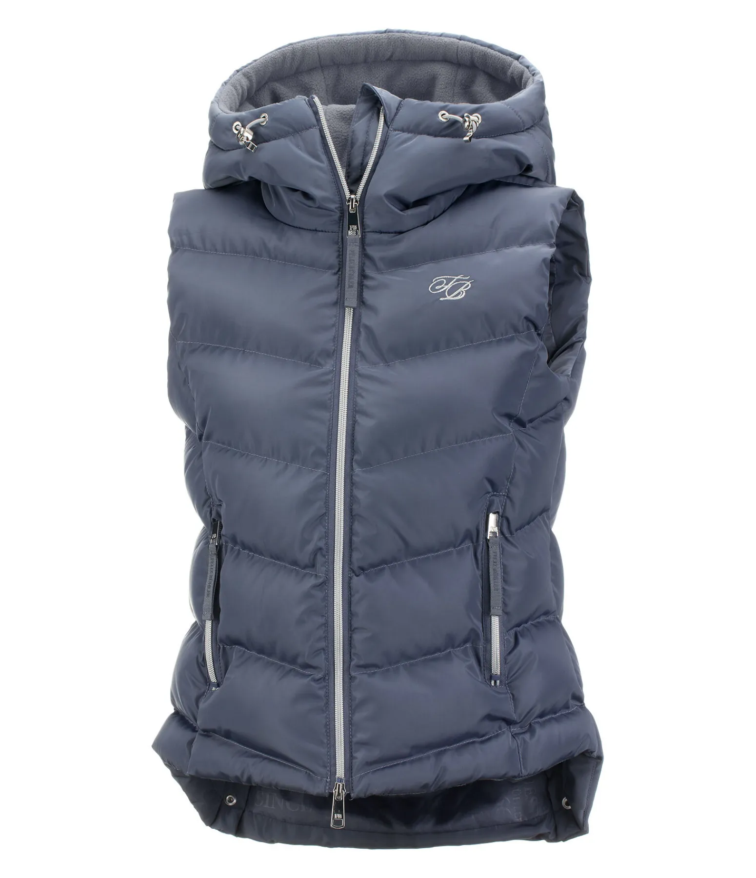 Gilet d’équitation avec doublure chaude. Capuche haute réglable doublée en polaire. Bouton-pression pour fixer la capuche dans le dos. Coupe cintrée légèrement plus longue à l’arrière. 2 poches avant zippées. Fermeture à glissière double sens avec sous-patte et protège-menton. 2 fentes cavalières avec boutons-pression à l’arrière. Garnissage doux imitation duvet. Broderie sur la poitrine et sur la capuche. 100 % polyester.