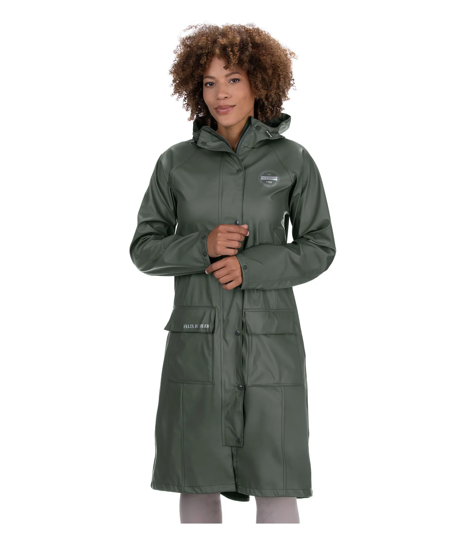 Imperméable d’équitation très long et confortable. Longue fente cavalière doublée. Capuche réglable avec système de fixation dans le dos. Imperméable (5 000 mm) et coupe-vent. Courroies de jambes réglables pour maintenir l’imperméable en place lors de la pratique de l’équitation. Fermeture à glissière double sens dissimulée avec sous-patte et protège-menton. Bas de manches réglables. 2 poches à rabat avec imprimé Felix Bühler réfléchissant. Logo réfléchissant sur la poitrine. Passepoil réfléchissant dans le dos. 100 % polyuréthane.