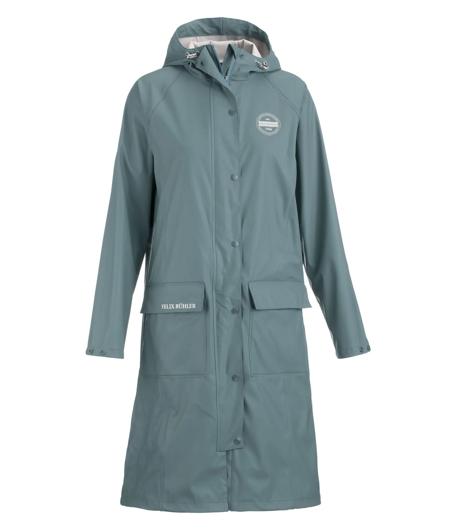 Imperméable d’équitation très long et confortable. Longue fente cavalière doublée. Capuche réglable avec système de fixation dans le dos. Imperméable (5 000 mm) et coupe-vent. Courroies de jambes réglables pour maintenir l’imperméable en place lors de la pratique de l’équitation. Fermeture à glissière double sens dissimulée avec sous-patte et protège-menton. Bas de manches réglables. 2 poches à rabat avec imprimé Felix Bühler réfléchissant. Logo réfléchissant sur la poitrine. Passepoil réfléchissant dans le dos. 100 % polyuréthane.