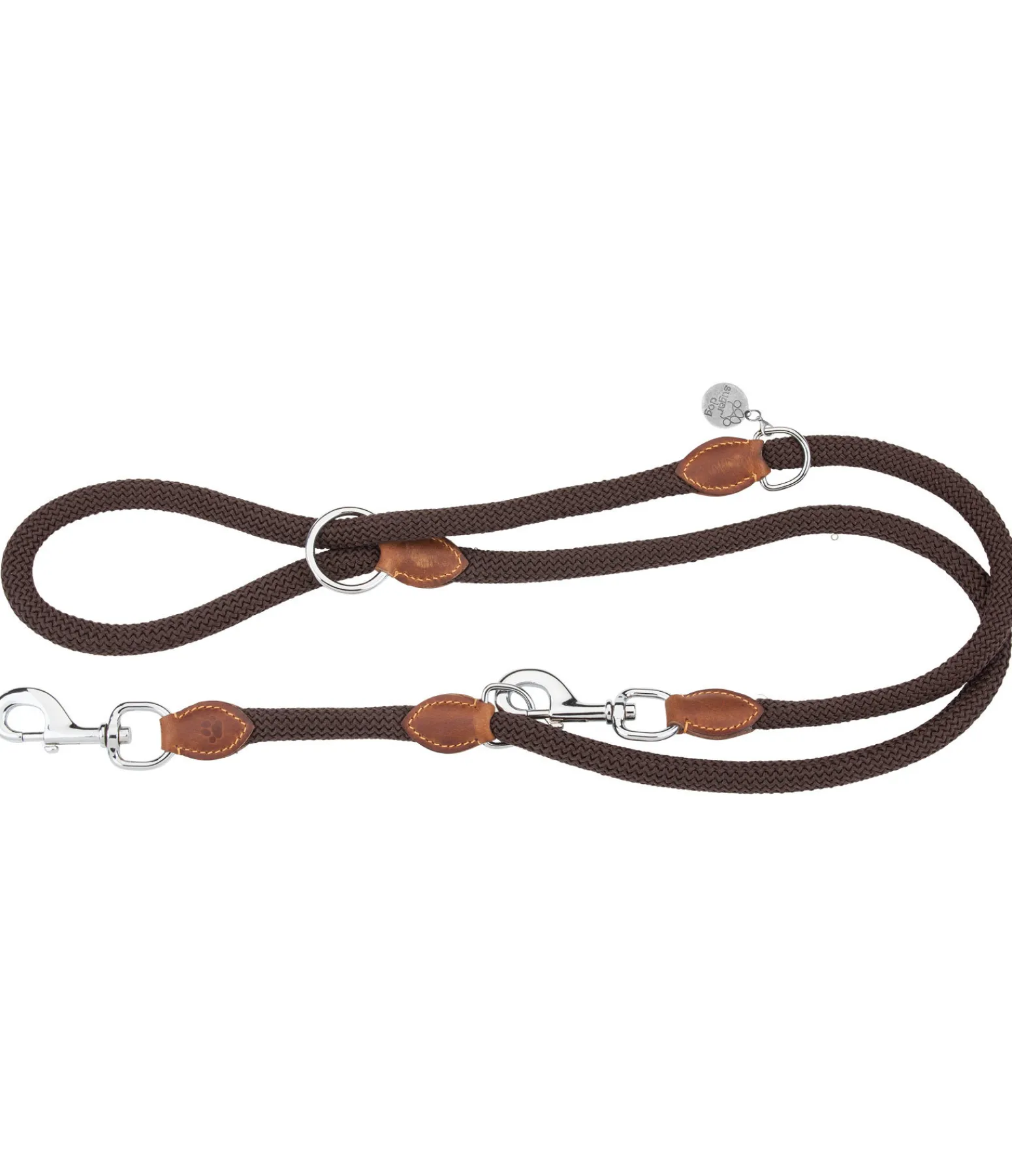 Elégante laisse en polypropylène doux avec des extrémités en cuir fin huilé. Trois possibilités d’attache. Avec un imprimé patte subtil. Longueur 200 cm. Convient pour les grands chiens.