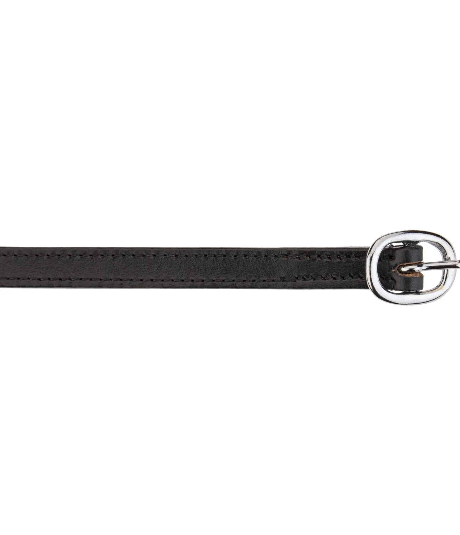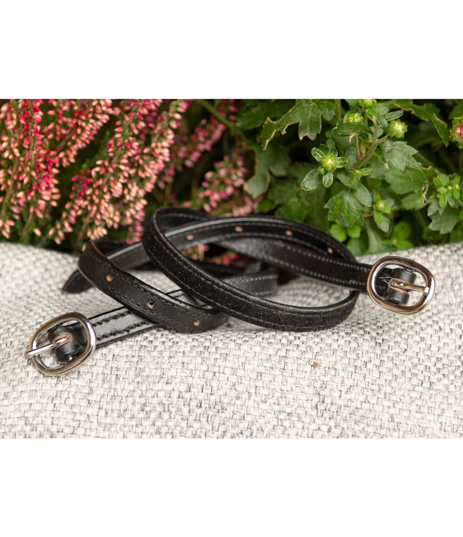 Lanières d’éperons avec doublure intérieure en velours pour ne pas abîmer les bottes. Look sobre. Cuir véritable. La paire.