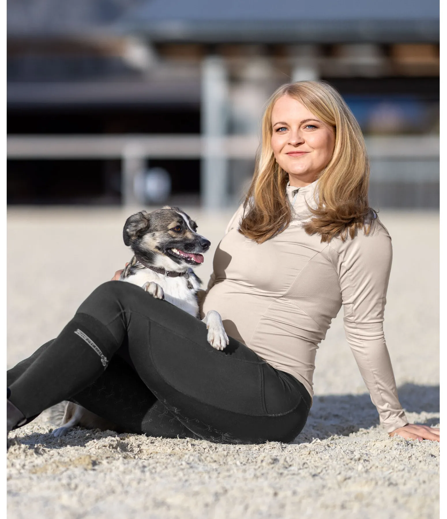 Parfait pour les mamans avant ou après la naissance. Legging d’équitation très confortable de qualité supérieure extensible dans 4 directions, qui s’adapte à la grossesse. Ajusté, s’adapte à votre morphologie. Le legging couvre entièrement le ventre et conserve son parfait maintien même s’il est très sollicité. Fond intégral en silicone à motif de mors. Respirant et à séchage rapide. Ceinture de grossesse extra-large, 2 poches latérales pour téléphone portable, sans coutures aux genoux, bas de jambe extensible, imprimé Felix Bühler. 78 % polyester, 22 % élasthanne.