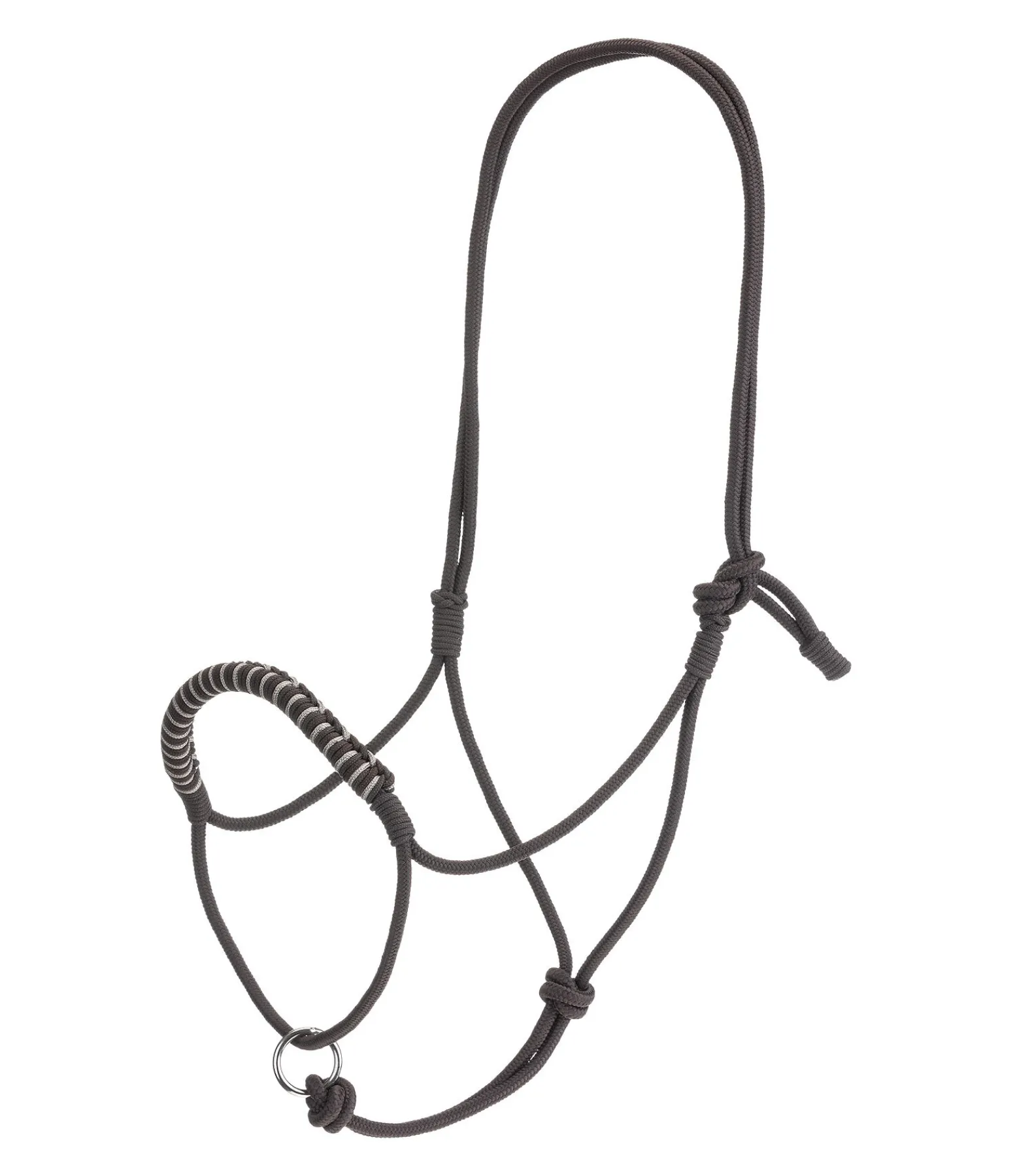 Licol en corde. Anneau coulissant. Sans noeuds. Ne glisse pas en cas de traction latérale, pour une communication précise avec le cheval. Muserolle renforcée. Épaisseur de la corde 6 mm. 100 % polypropylène.