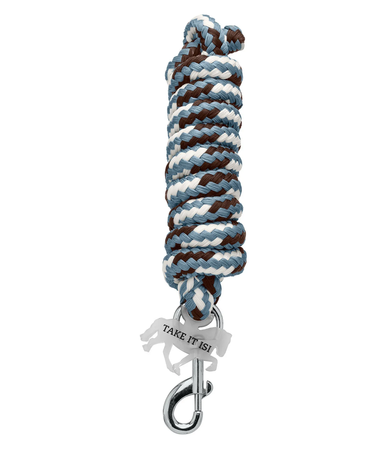 Longe longue avec mousqueton tressée de plusieurs couleurs. Médaillon en caoutchouc avec logo. Bouclerie argentée. 100 % polyester.