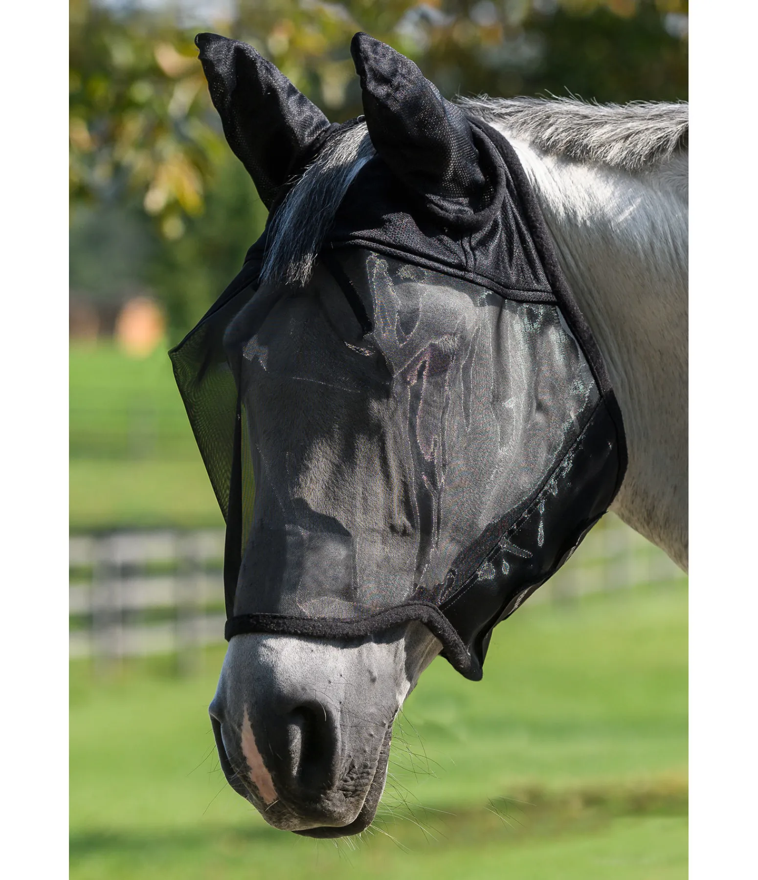 Masque anti-mouches avec grand filet protecteur éloigné des yeux et du chanfrein grâce à des coutures innovantes. Matière en mailles respirantes aux oreilles et front. Bordures douces en polaire pour éviter les irritations dues aux frottements. Fermeture par 2 pattes auto-agrippantes pour un ajustement optimal. 100 % polyester.
