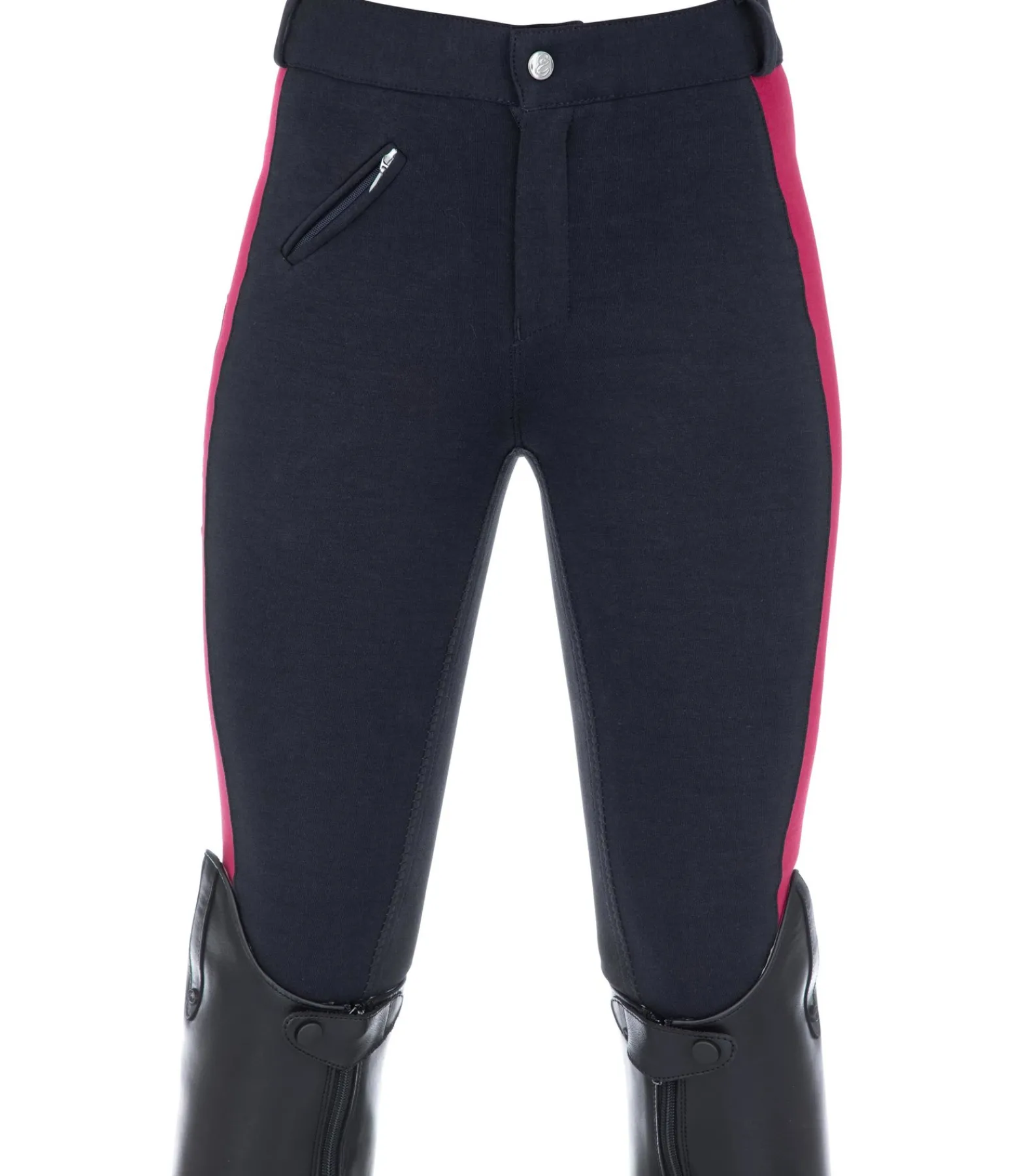 Pantalon d’équitation bicolore tendance et très confortable. Fond intégral synthétique en stretch jusqu’au mollet. Offre une assise confortable et un bon maintien en selle. Coupe ajustée. Matière extensible et respirante. Séchage rapide. Facile d’entretien. Ceinture élastiquée avec passants. Aucune gêne avec un gilet de sécurité par-dessus. Bas de jambe extensible sans patte auto-agrippante. Broderie Equilibre le long de la cuisse et petite poche zippée. Matière 95 % coton,5 % élasthanne. Lavable en machine à 30°C.