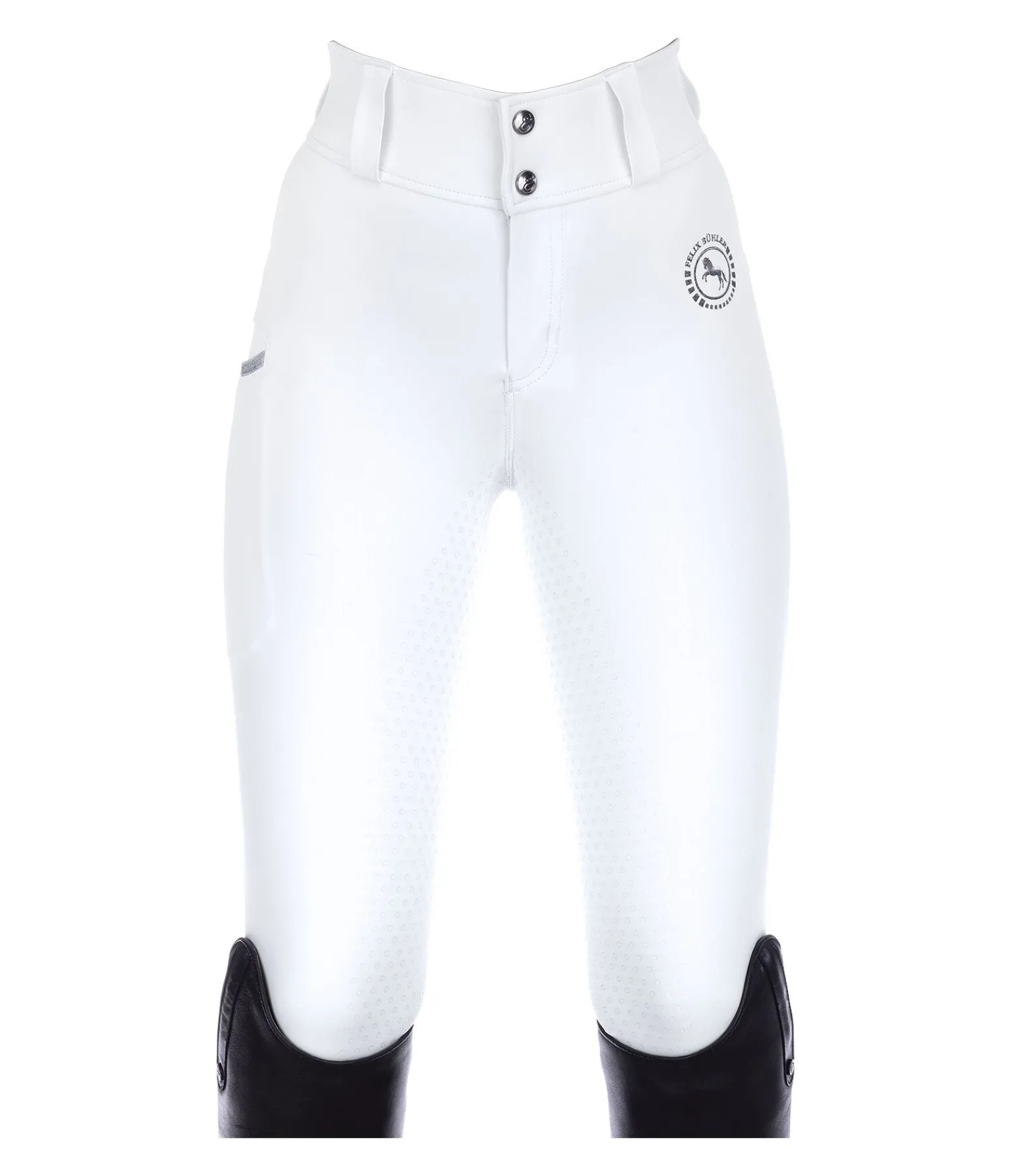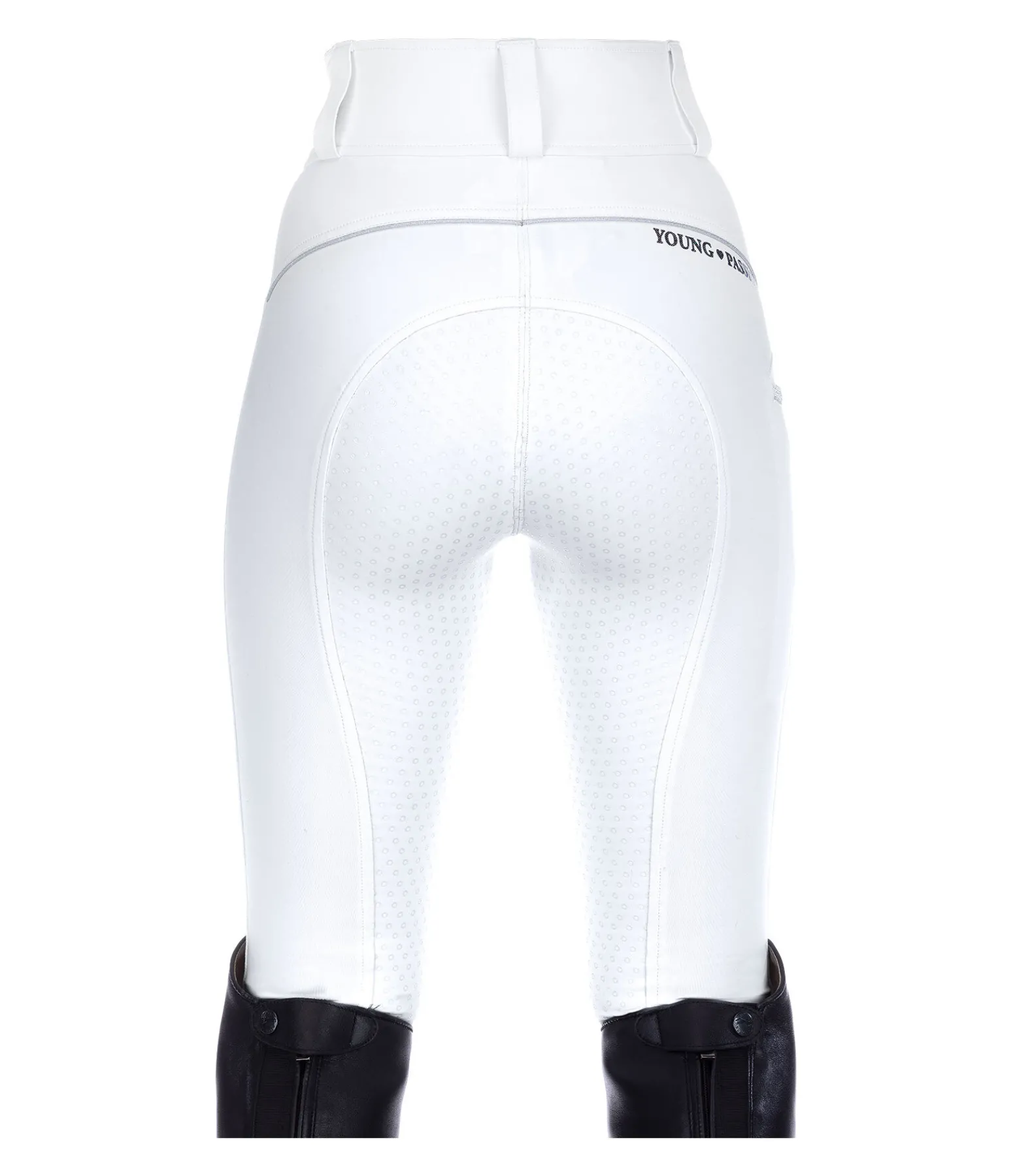Pantalon d’équitation confortable à fond intégral grip en silicone. Matière stretch respirante, extensible dans 4 directions. Une poche latérale pour téléphone portable sur la jambe droite avec bordure scintillante. Motif cheval à l’avant. Passepoil scintillant à l’arrière avec slogan « YOUNG PASSION ». Bas de jambe extensible sans patte auto-agrippante. Aucune couture gênante aux genoux. 78 % polyester, 22 % élasthanne.
