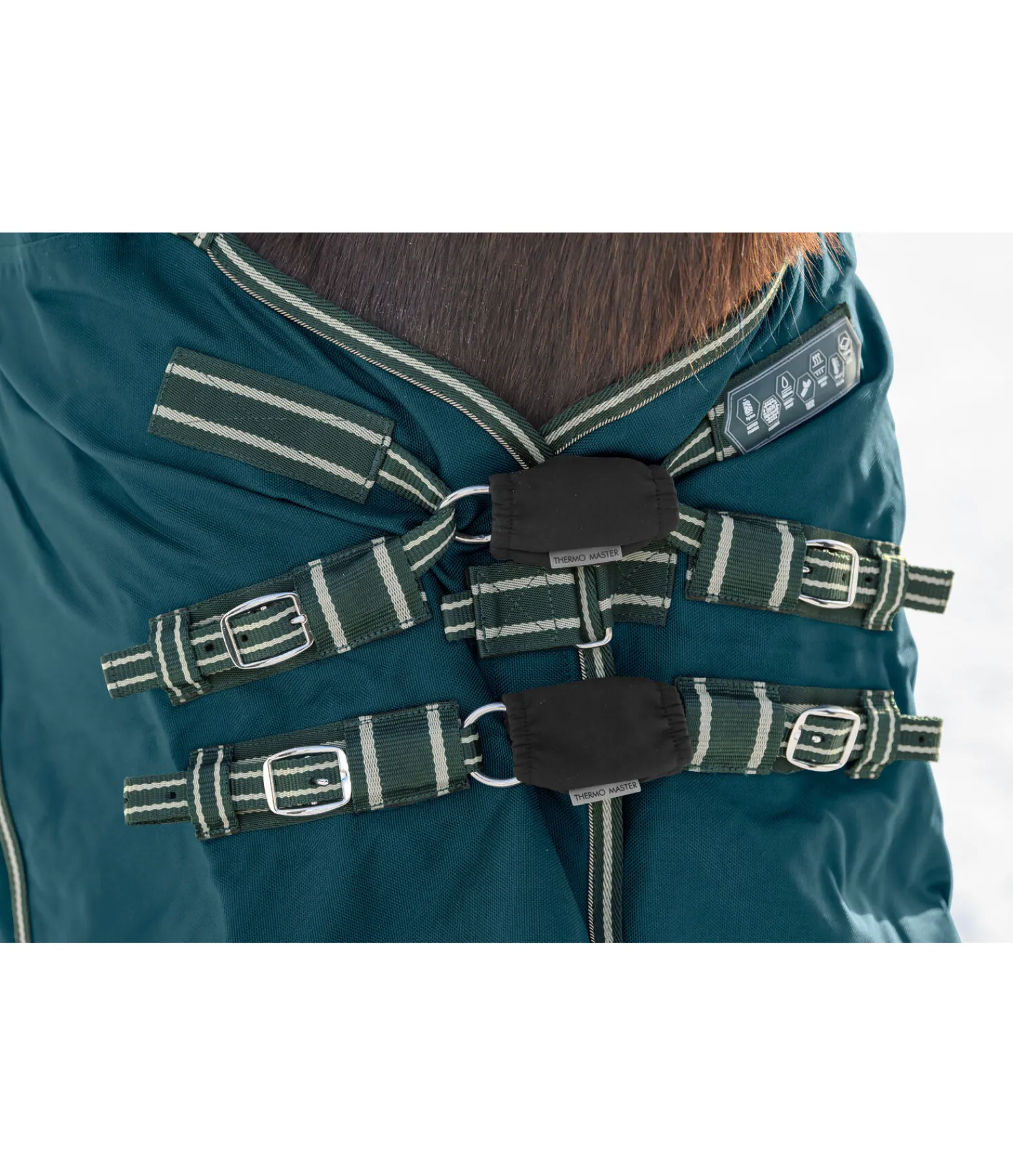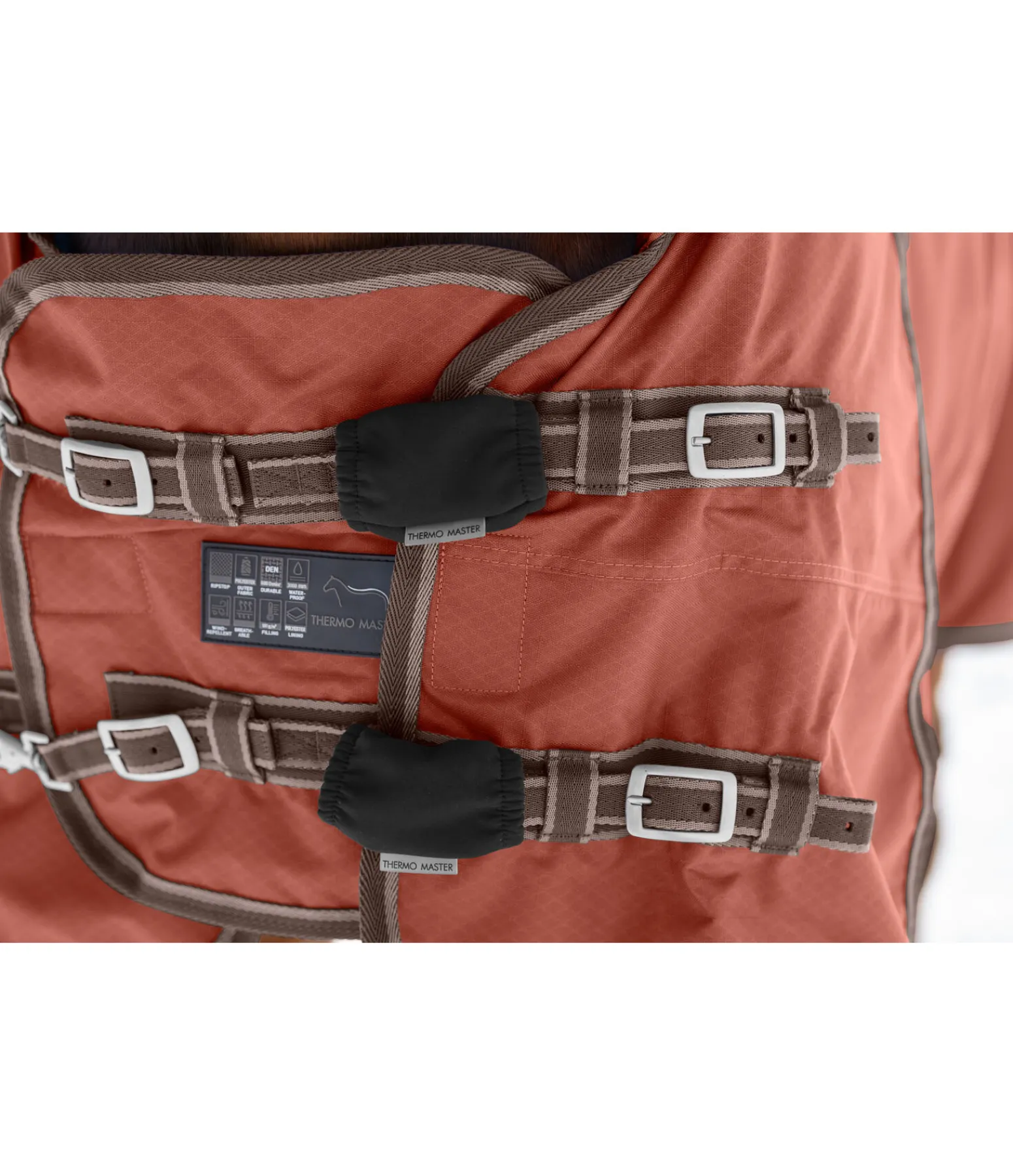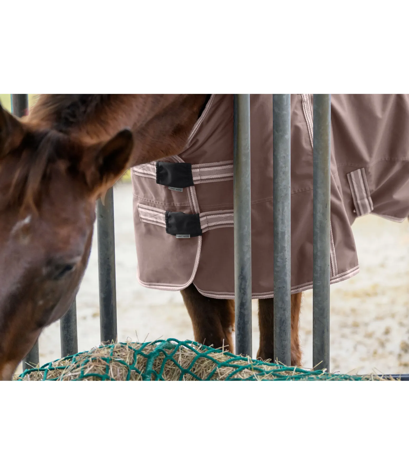 Protection sûre pour système de fermeture des couvertures à crochet en T ou à mousqueton. Offre une protection efficace contre les accrochages dans les râteliers à foin, les filets à foin ou les clôtures. Matière softshell douce, légère et déperlante avec élastique. Se glisse facilement sur la fermeture. 2 pièces. 100 % polyester.