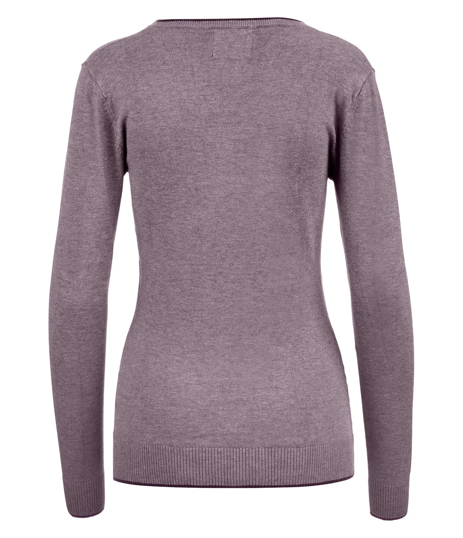 Joli pull-over à col V en maille douce. Logo brodé sur la poitrine. Finition en maille côtelée avec bordure de couleur contrastante sur le col, le bas des manches et l’ourlet. 80 % viscose, 20 % nylon.