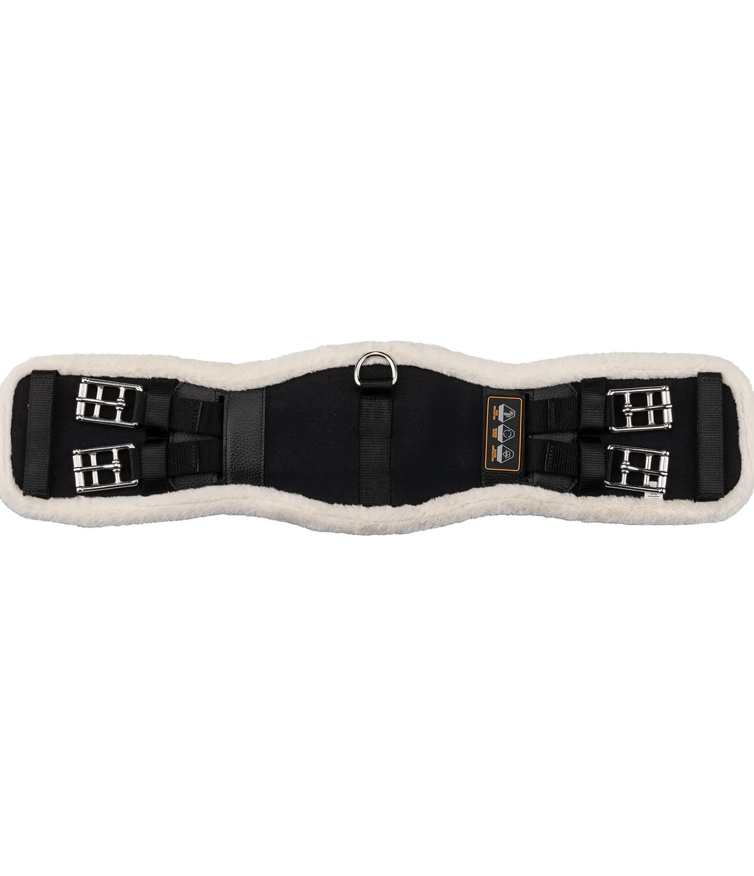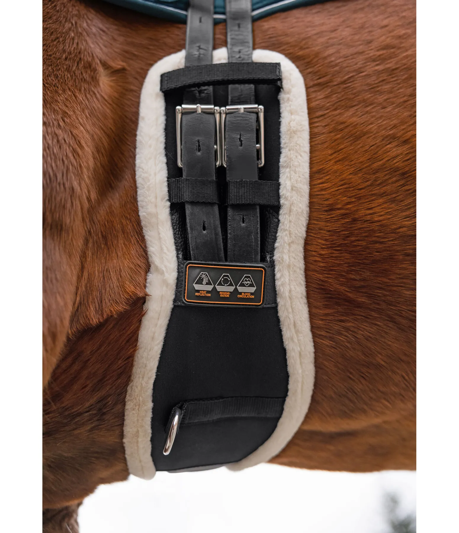 Sangle de dressage anatomique. Doublure intérieure en tissu Air Mesh respirant avec fibres de céramique favorisant la circulation sanguine. Peut ainsi prévenir ou soulager les tensions dans les muscles. Doublure douce en polaire Teddy afin de prévenir les irritations dues aux frottements. Sans insert élastique. Anneau en D central et boucles à rouleau en acier inoxydable. Lavable en machine à 30°C (fermer les pattes auto-agrippantes et utiliser un petit sac de lavage pour protéger le tambour de la machine à laver des boucles en métal). Largeur de la sangle : 11-14,5 cm. Matière extérieure 100 % caoutchouc chloroprène. Doublure intérieure en fourrure Teddy 100 % polyester.