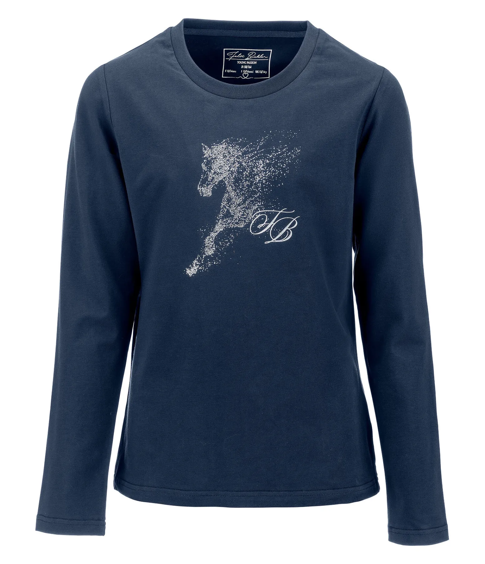T-shirt à manches longues tendance pour enfant avec imprimé métallisé motif cheval scintillant. Col rond. 95 % coton, 5 % élasthanne.