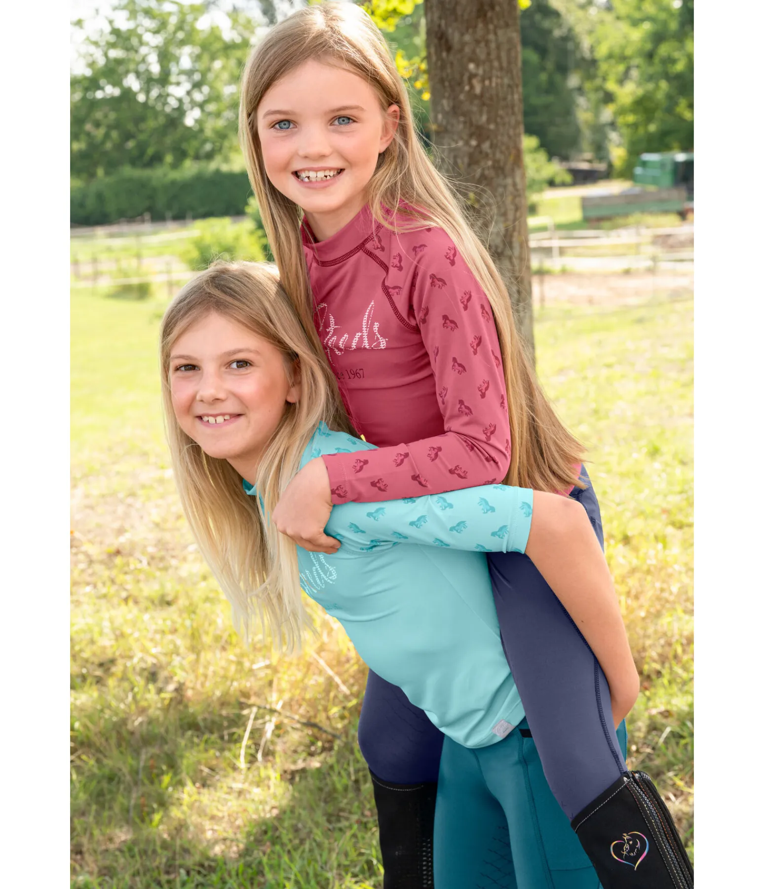 Indispensable pour l’été ! T-shirt fonctionnel à manches courtes raglan. Col légèrement montant. Matière respirante à séchage rapide. Protection UV 30+. Joli imprimé cheval. Logo STEEDS sur la poitrine. 88 % polyester, 12 % élasthanne.