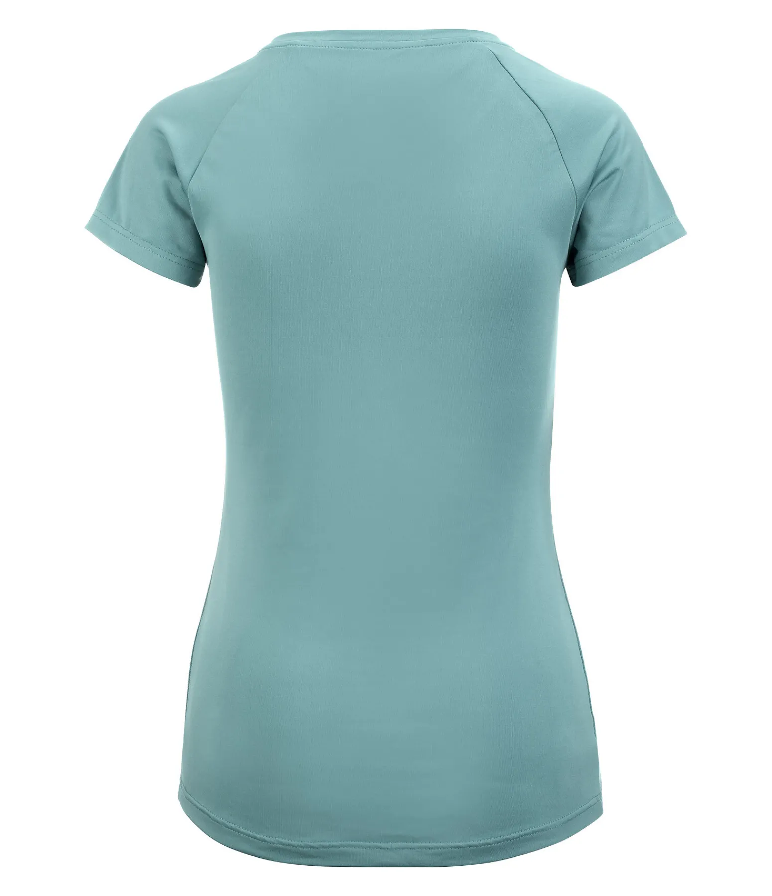 T-shirt col en V à manches courtes. Doux et extensible. Matière respirante à séchage rapide. Imprimé argenté sur la poitrine. 88 % polyester, 12 % élasthanne.