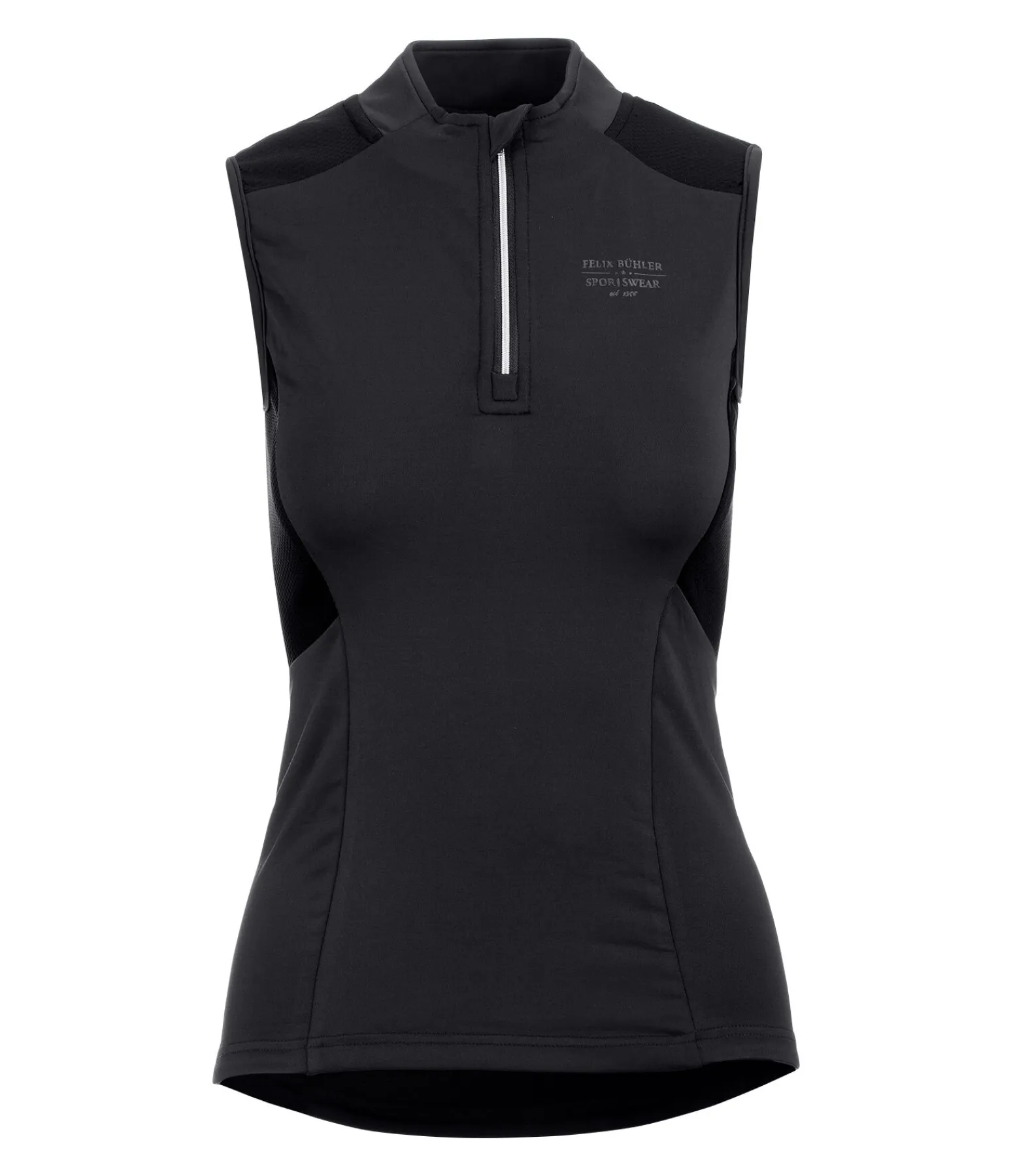 Essentiel pour l’été ! T-shirt technique sans manches avec col montant et fermeture à glissière scintillante avec protège-menton. Respirabilité maximale grâce aux empiècements en mesh sur les côtés. Tissu technique respirant et à séchage rapide. 88 % polyester, 12 % élasthanne.