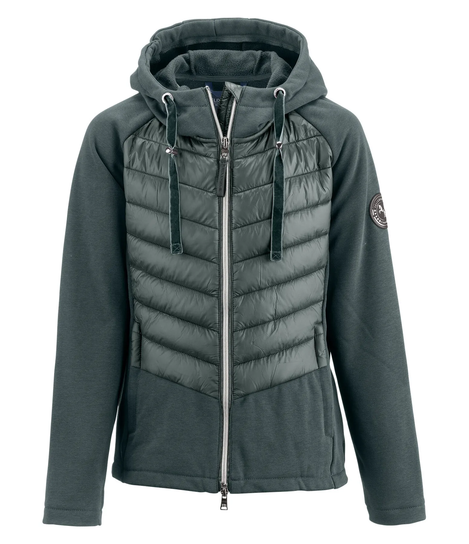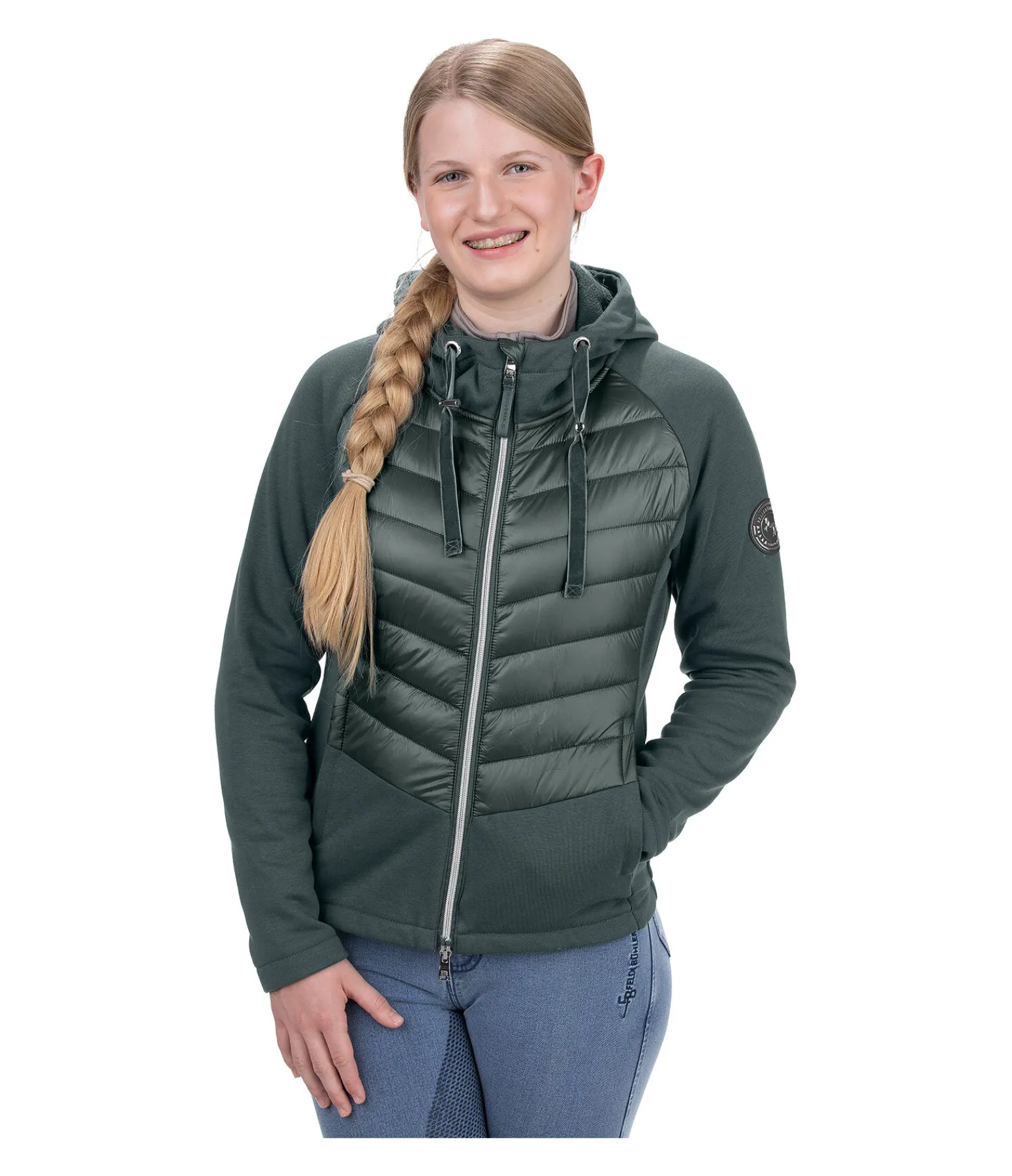 Veste d’équitation tendance pour enfant dans une combinaison parfaite de coton mélangé stretch doux et de nylon naturellement brillant, matelassé et rembourré. Le coton mélangé stretch sur les côtés, les manches et le dos est respirant et molletonné à l’intérieur. Col haut avec capuche réglable pouvant être fixée dans le dos. Badge Felix Bühler chic sur la manche, 2 poches zippées devant et fermeture à glissière double sens avec sous-patte et protège-menton. Bas des manches et taille élastiqués. Matière principale : 64 % polyester, 36 % coton. Inserts matelassés 100 % nylon.