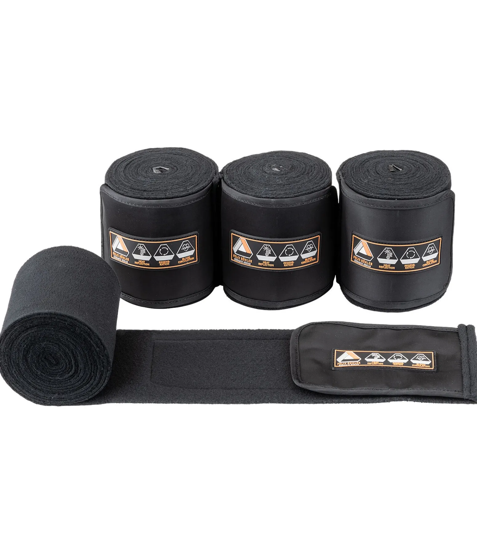 Bandes polaires avec fibres de céramiques fondues pouvant avoir un effet positif sur la mobilité du cheval. Les particules réfléchissent la chaleur corporelle sous forme de rayonnement infrarouge. Les bandes ont un effet de soutien pendant la phase d’échauffement. Idéales pour la reprise du travail après une blessure au tendon, en phase de convalescence ou en cas de maladies chroniques de l’appareil locomoteur comme l’arthrose. Large patte auto-agrippante pour un maintien sûr. Nous déconseillons aux femmes enceintes ainsi qu’aux animaux en gestation l’utilisation des articles contenant des fibres de céramique. Lavable en machine à 30°C (ne pas mettre au sèche-linge). Fermer les pattes auto-agrippantes avant lavage. 305 x 10 cm. 100 % polyester.