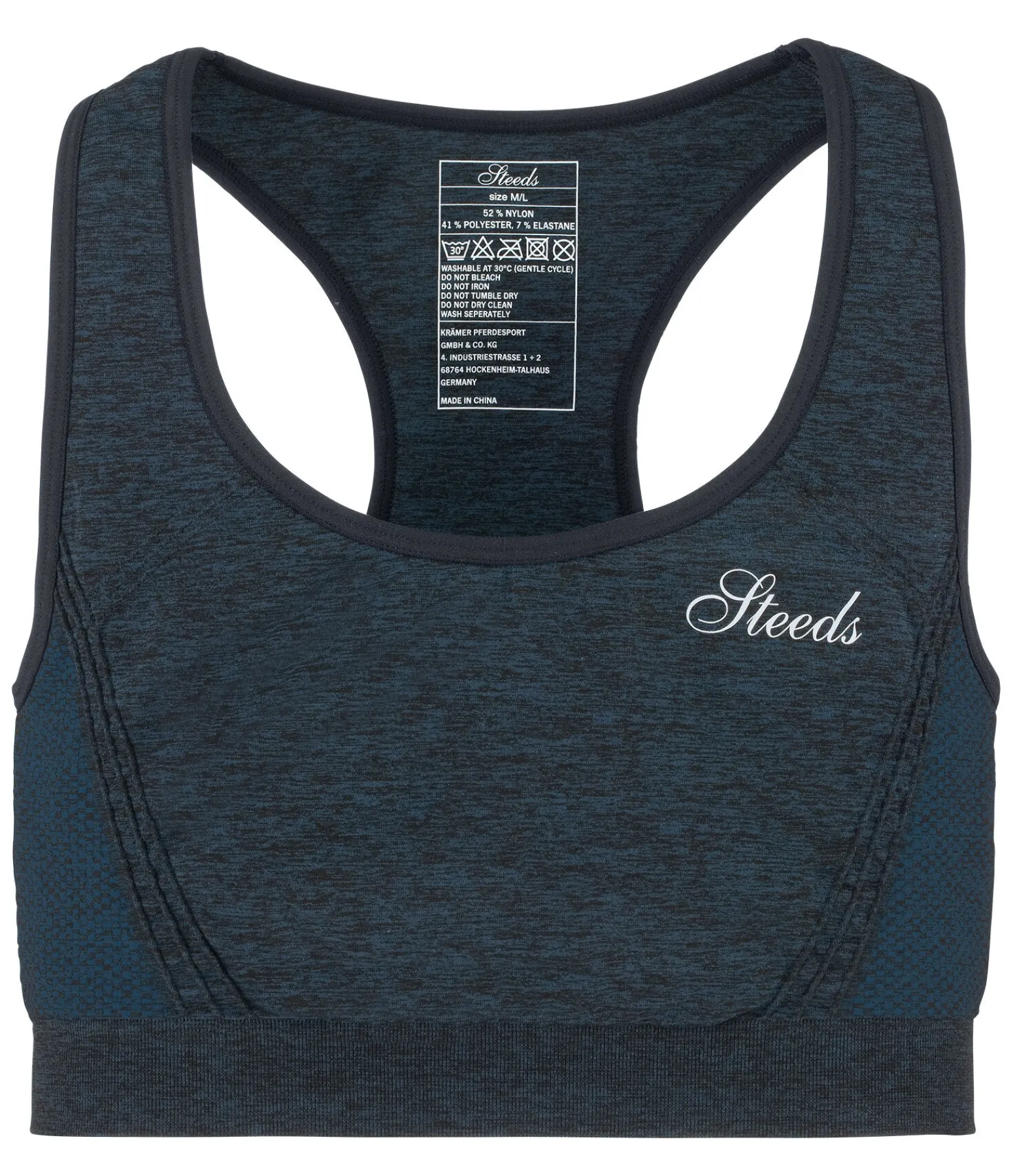 Brassière de sport technique à séchage rapide. Aspect chiné. Dos nageur. Large bande élastique sous la poitrine. Soutien moyen. 52 % nylon, 41 % polyester, 7 % élasthanne.