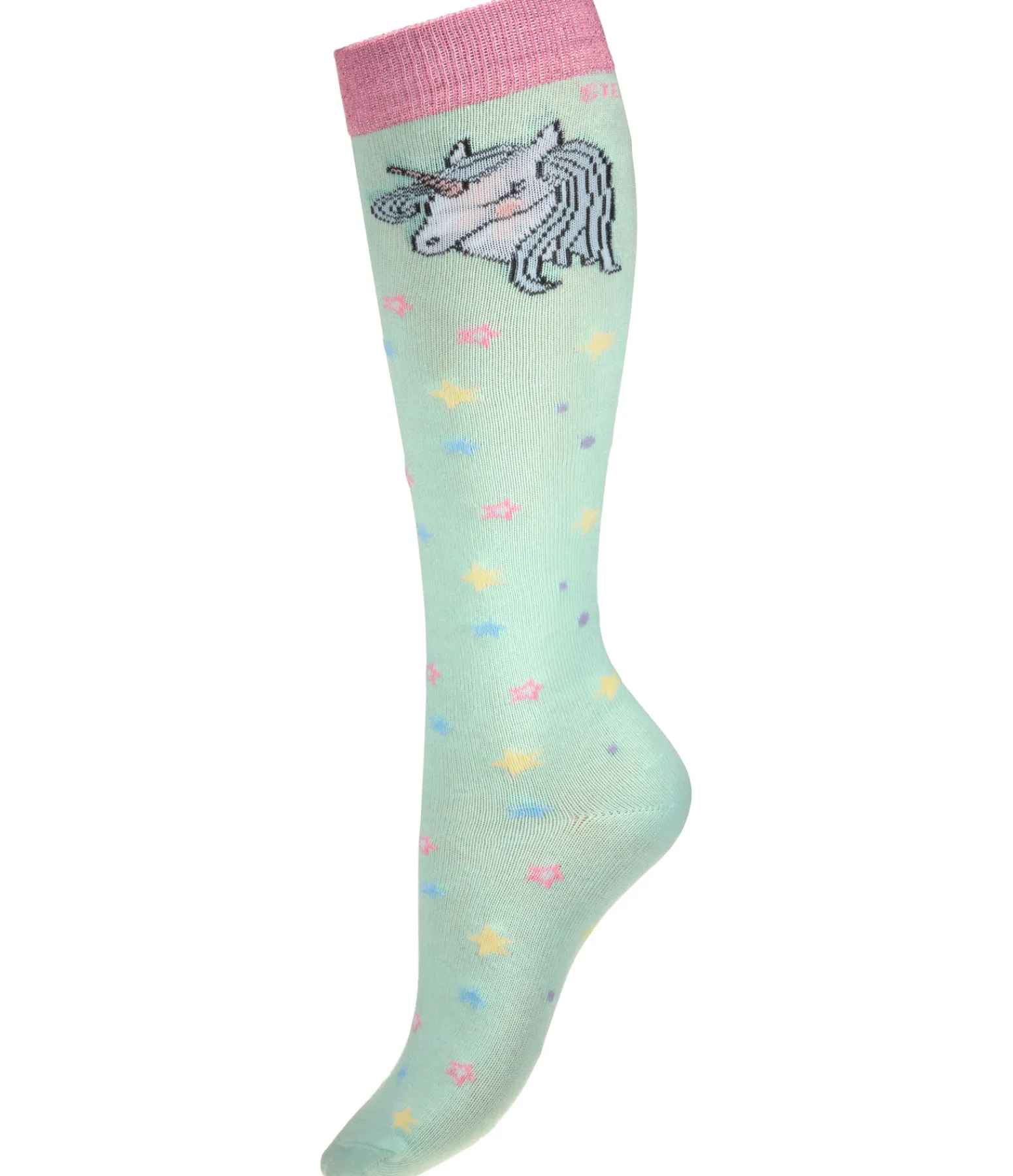 Chaussettes hautes d’équitation avec imprimé étoilé et motif licorne. Bord en tissu pailleté. 76 % coton, 22 % polyester, 2 % élasthanne.
