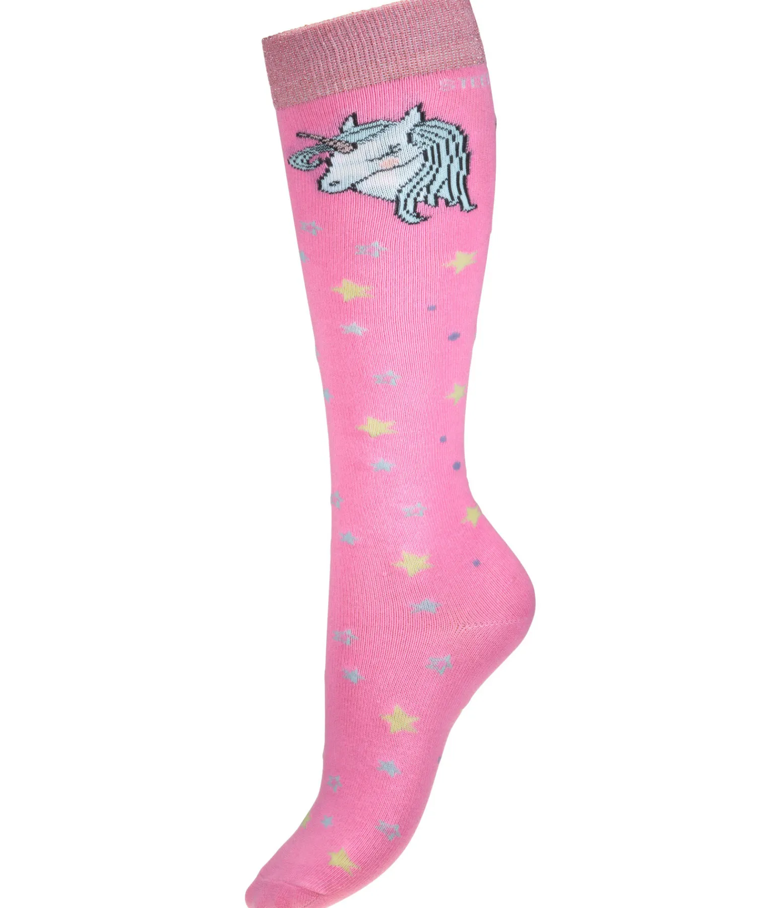 Chaussettes hautes d’équitation avec imprimé étoilé et motif licorne. Bord en tissu pailleté. 76 % coton, 22 % polyester, 2 % élasthanne.