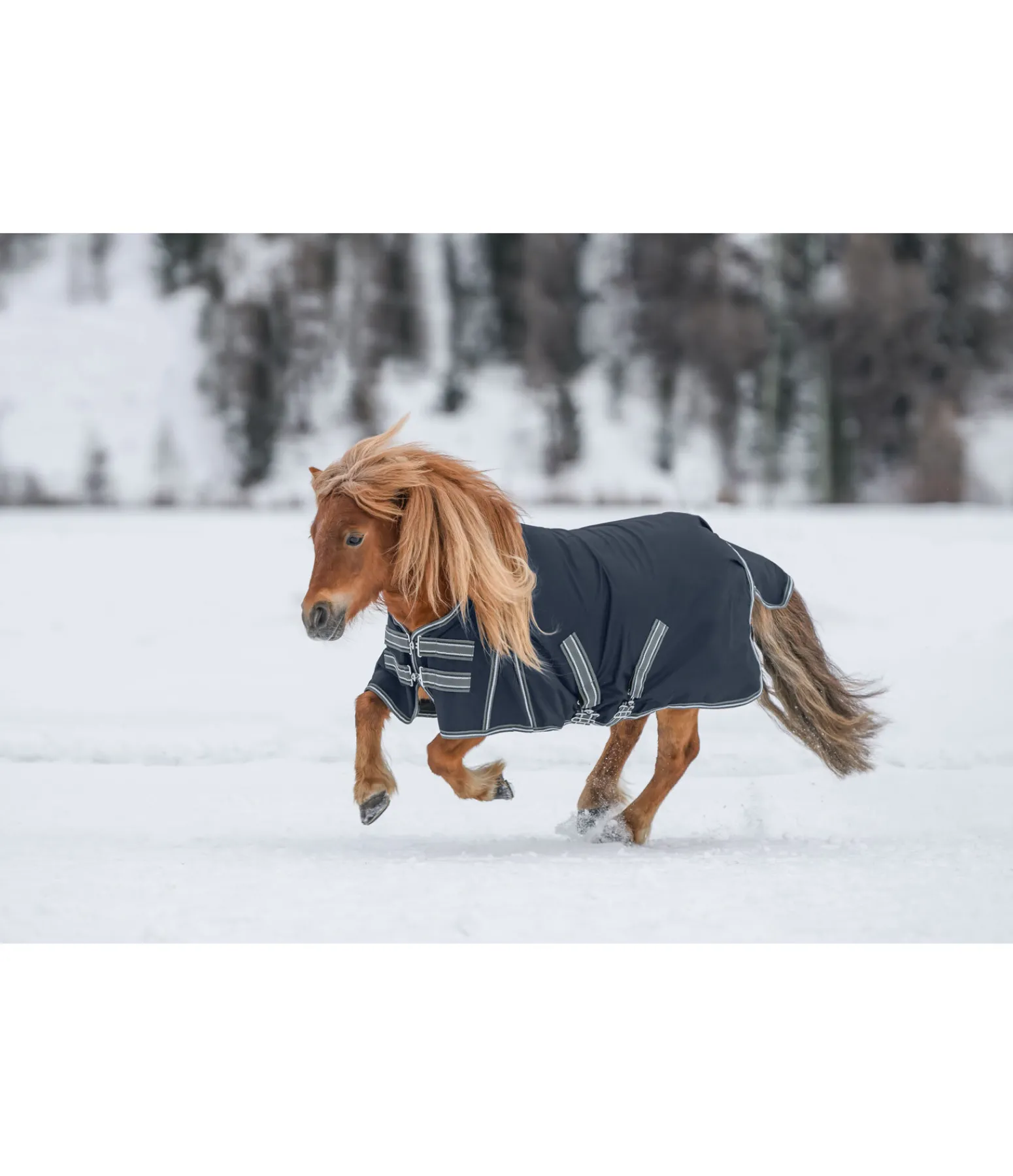Couverture d’extérieur classique. Imperméable (3.000 mm). En matière Ripstop résistante 600 deniers avec garnissage 100g. Avec plis d’aisance pour une liberté de mouvement optimale, double fermeture de poitrail avec crochets en T et patte auto-agrippante supplémentaire, sursangles croisées réglables et rabat de queue. Anneaux permettant la fixation de courroies de cuisses (non incluses), courroie de queue réglable incluse. Pad de garrot permettant d’éviter les pressions et irritations dues aux frottements. Doublure lisse protégeant la robe. 100 % polyester.