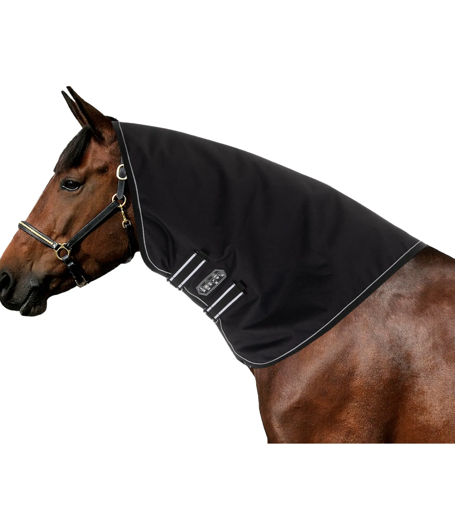 Couvre-cou imperméable (5.000 mm) et résistant (1.200 deniers), adapté à la chemise avec système de liners Felix Bühler Liberty 422 527. Équipé de pattes auto-agrippantes qui permettent de le fixer aux anneaux en métal de la chemise. Avec garnissage 150 g. Doublure lisse protégeant la robe. 100 % polyester.