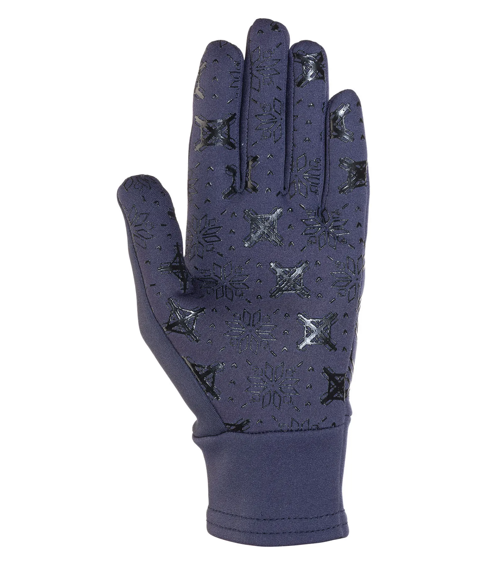 Gants d’équitation sportifs en polaire douce, également adaptés aux journées très froides. Paume avec imprimé flocon de neige. Dessus 100% nylon, intérieur 100% polyester.