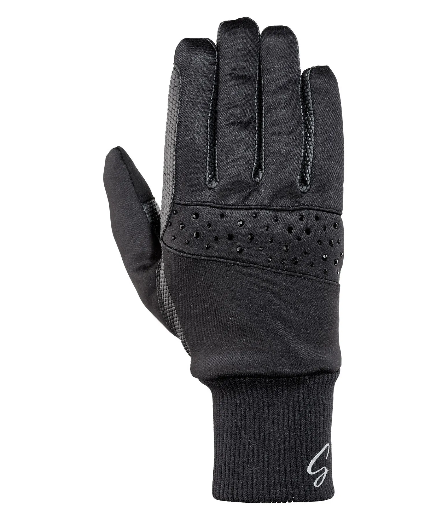 Élégants gants d’équitation d’hiver en matière softshell, déperlante et confortable. Ornés de petites pierres scintillantes sur le dos de la main, pour attirer tous les regards. Matière synthétique douce antidérapante à l’intérieur de la main. Poignets élastiqués. Compatibles avec les écrans tactiles. Dessus : 85 % polyester, 15 % élasthanne. Paume : 80 % polyuréthane, 20 % polyester. Doublure 90 % polyester, 10 % élasthanne.