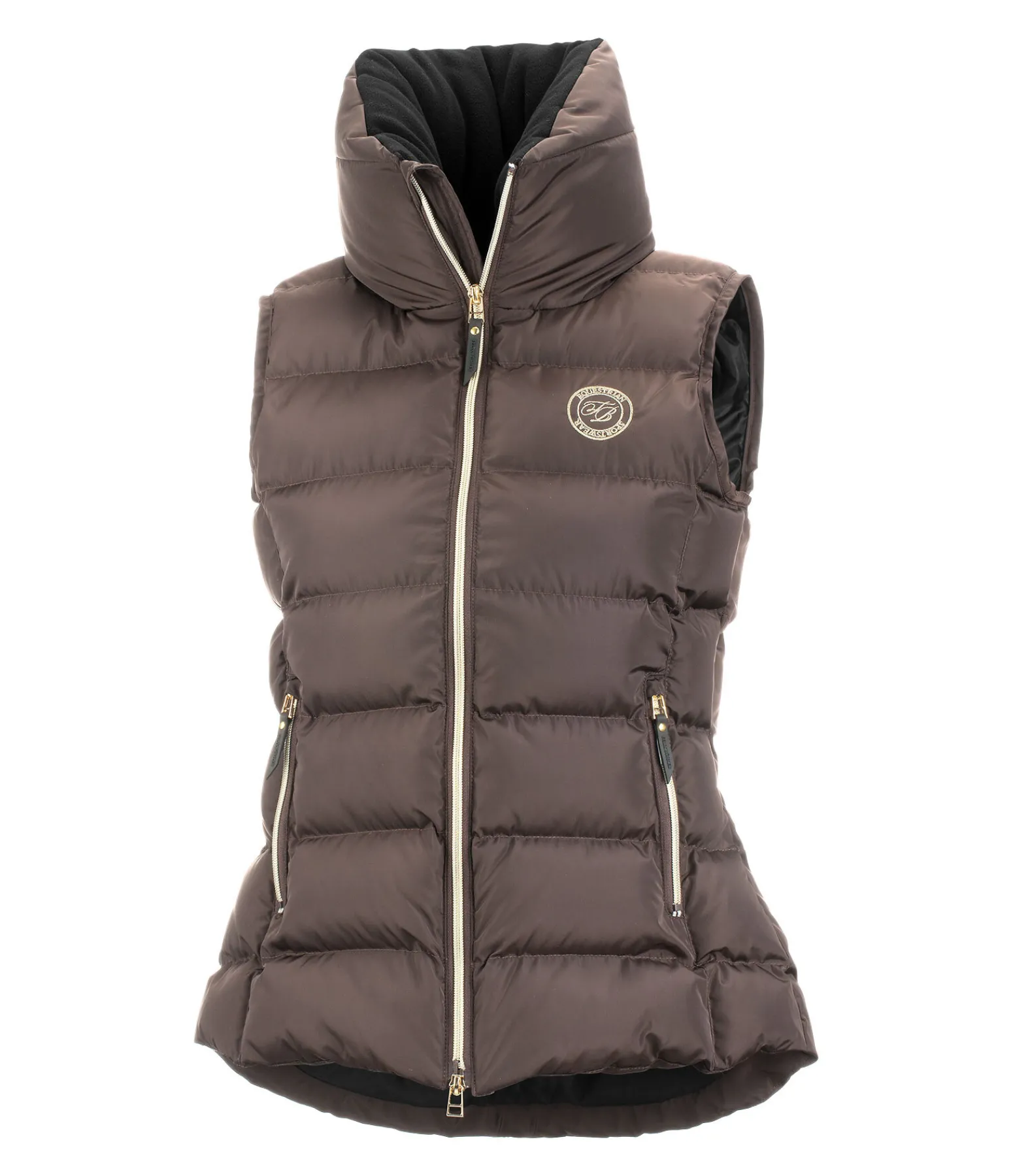 Élégant gilet d’équitation classique avec large col extra haut, chaud et doublé de polaire douce. Coupe plus longue à l’arrière. Rembourrage douillet, fermeture à glissière double sens avec sous-patte et protège-menton, 2 poches zippées devant et 1 poche intérieure zippée. Broderie Felix Bühler sur la poitrine et le col. 100 % polyester.