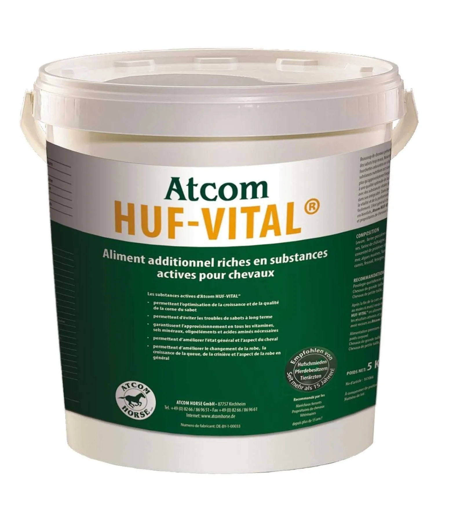 Apporte au cheval tous les minéraux, vitamines et oligo-éléments essentiels au bien-être, à la santé des sabots et au bon fonctionnement du métabolisme. Le produit Huf-Vital est utilisé et recommandé depuis plus de 15 ans par des maréchaux-ferrants, des vétérinaires et des cavaliers.