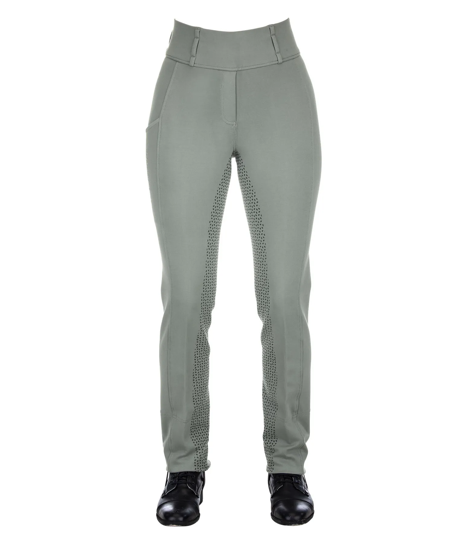 Confortable legging d’équitation jodhpur à fond intégral en silicone, souple et extensible dans 4 directions. Matière respirante. Séchage rapide. Coupe bootcut. Sous-pieds élastiques réglables. Ceinture extra large élastiquée avec passants. 1 poche pour téléphone portable sur la cuisse. 1 poche arrière zippée. Aucune couture au niveau des genoux. 68 % viscose, 27 % nylon, 5 % élasthanne.