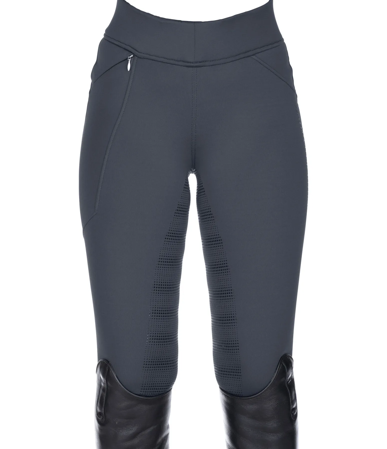 Legging d’équitation thermique ultra confortable. Taille haute. Fond intégral grip en silicone. Matière stretch douce et respirante. Séchage rapide. Poche latérale zippée pour téléphone portable. Logo brodé à l’arrière. 86 % polyester, 14 % élasthanne.