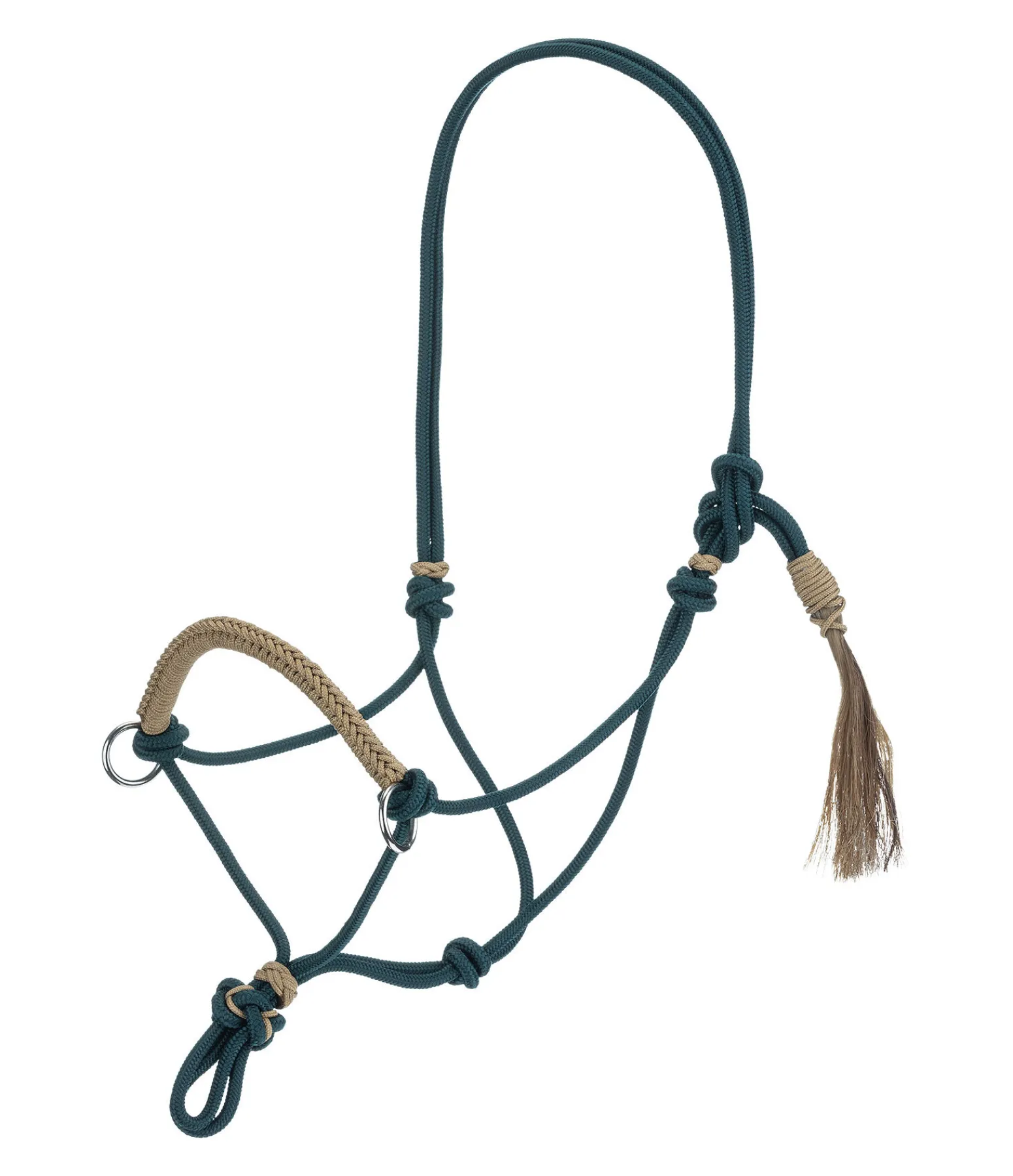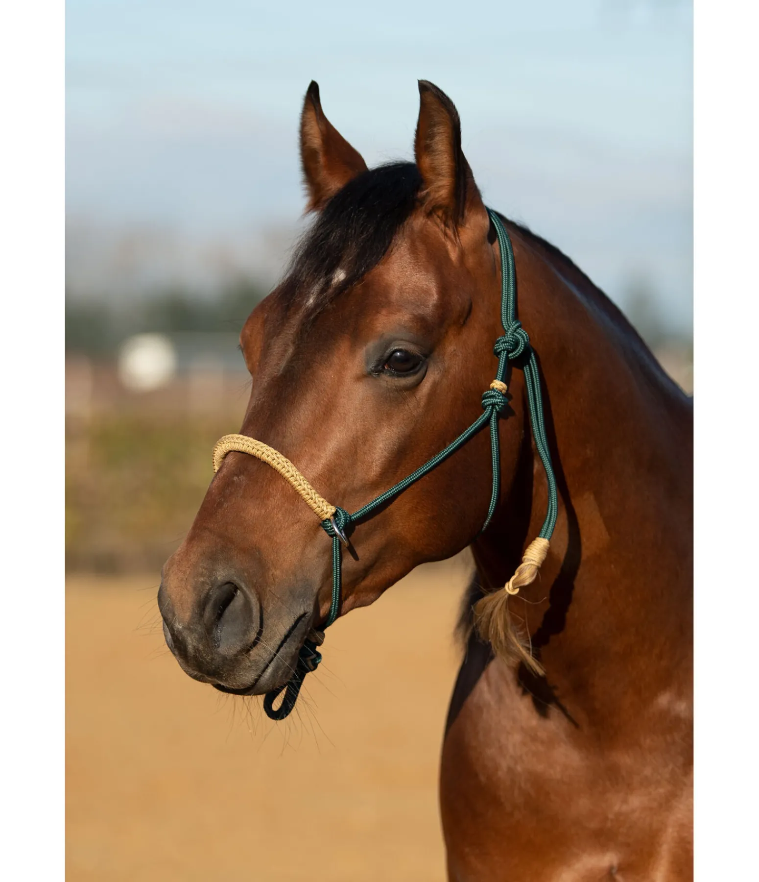 Magnifique licol à noeuds avec muserolle réglable. Idéal pour une communication précise avec le cheval. Muserolle renforcée et anneaux pour rênes. Épaisseur de la corde 6 mm. Avec pompon. 100 % polypropylène.