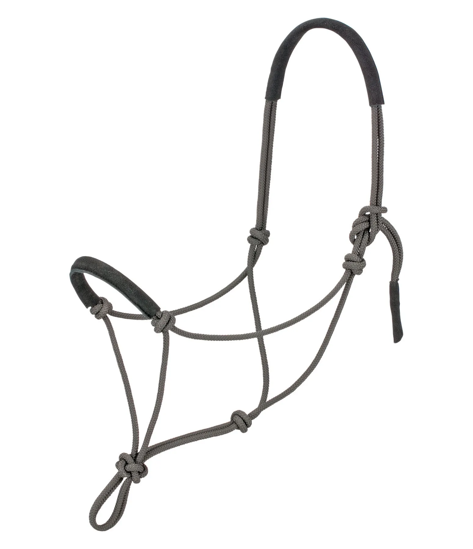 Licol à noeuds robuste. Doublure douce en daim sur la muserolle et la têtière pour plus de confort.