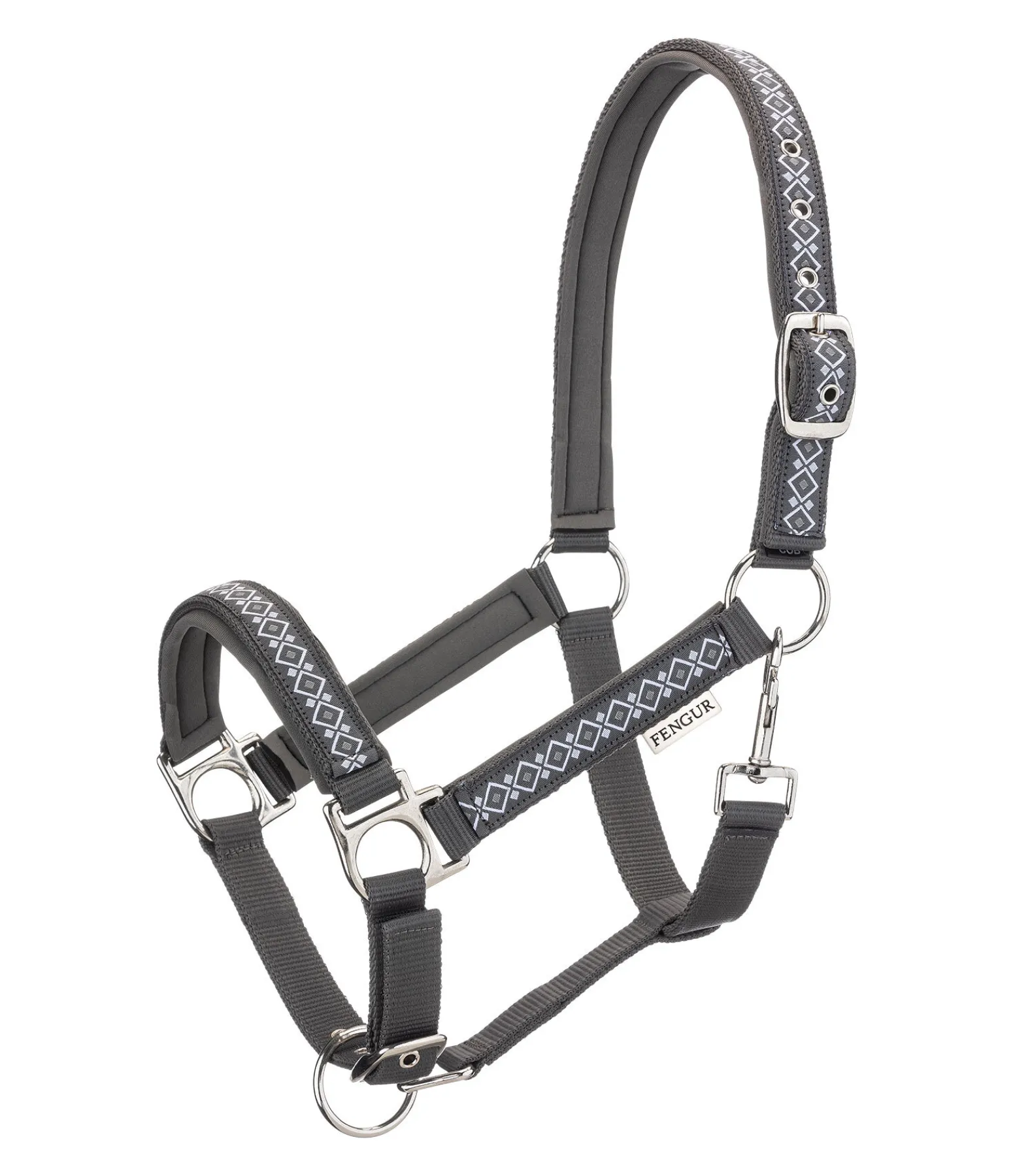 Licol avec motif nordique, pas uniquement réservé aux poneys islandais. Têtière, montants et muserolle avec doublure moelleuse. Têtière et muserolle réglables. Licol 100 % polypropylène, doublure 100 % polyester