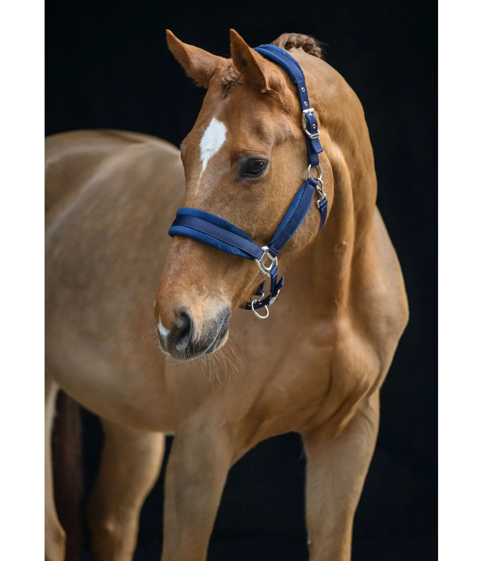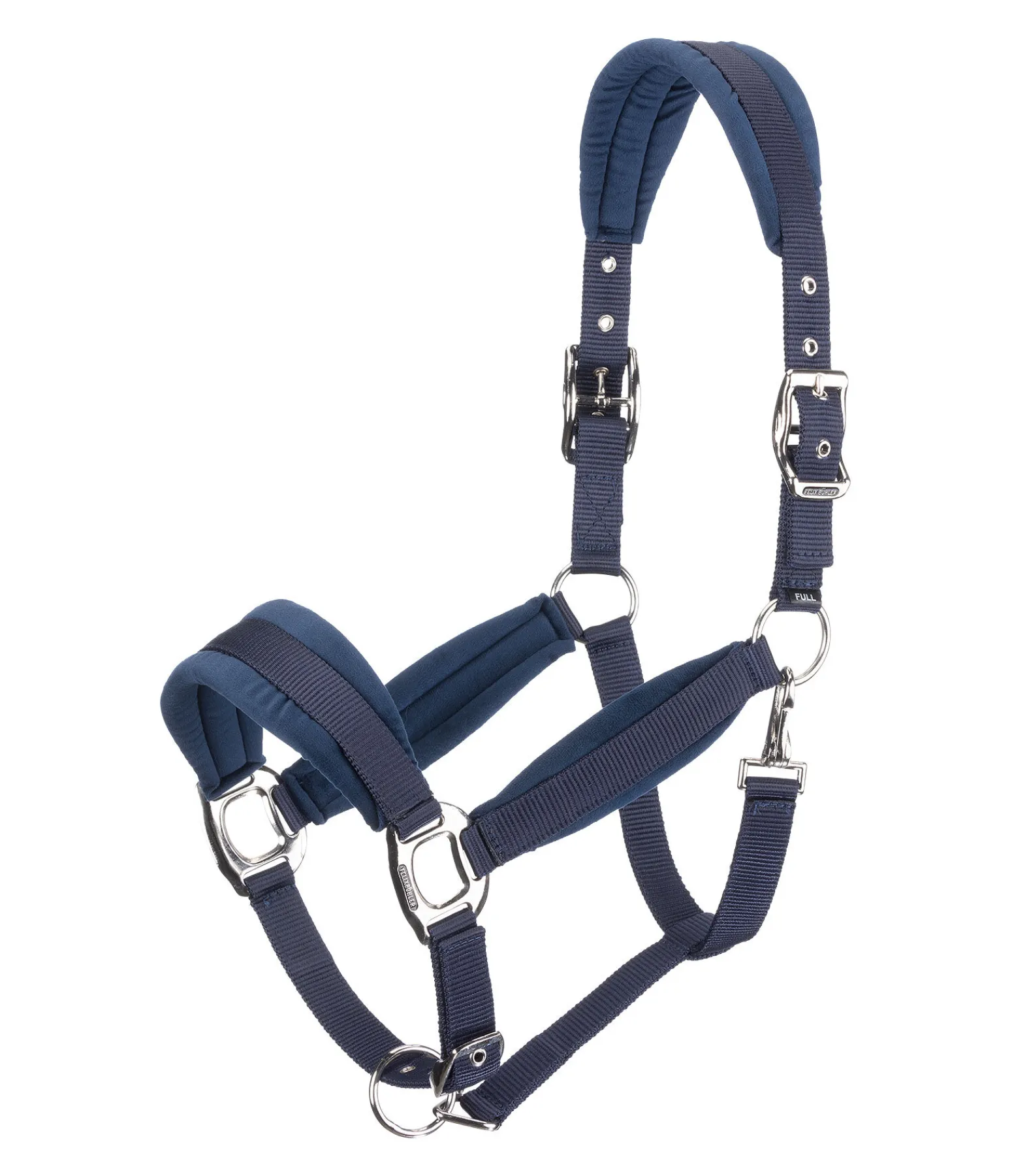 Licol élégant avec doublure effet velours sur la têtière, la muserolle et les montants. Têtière réglable des deux côtés et muserolle à réglage facile. Bouclerie argentée. 100 % polypropylène.