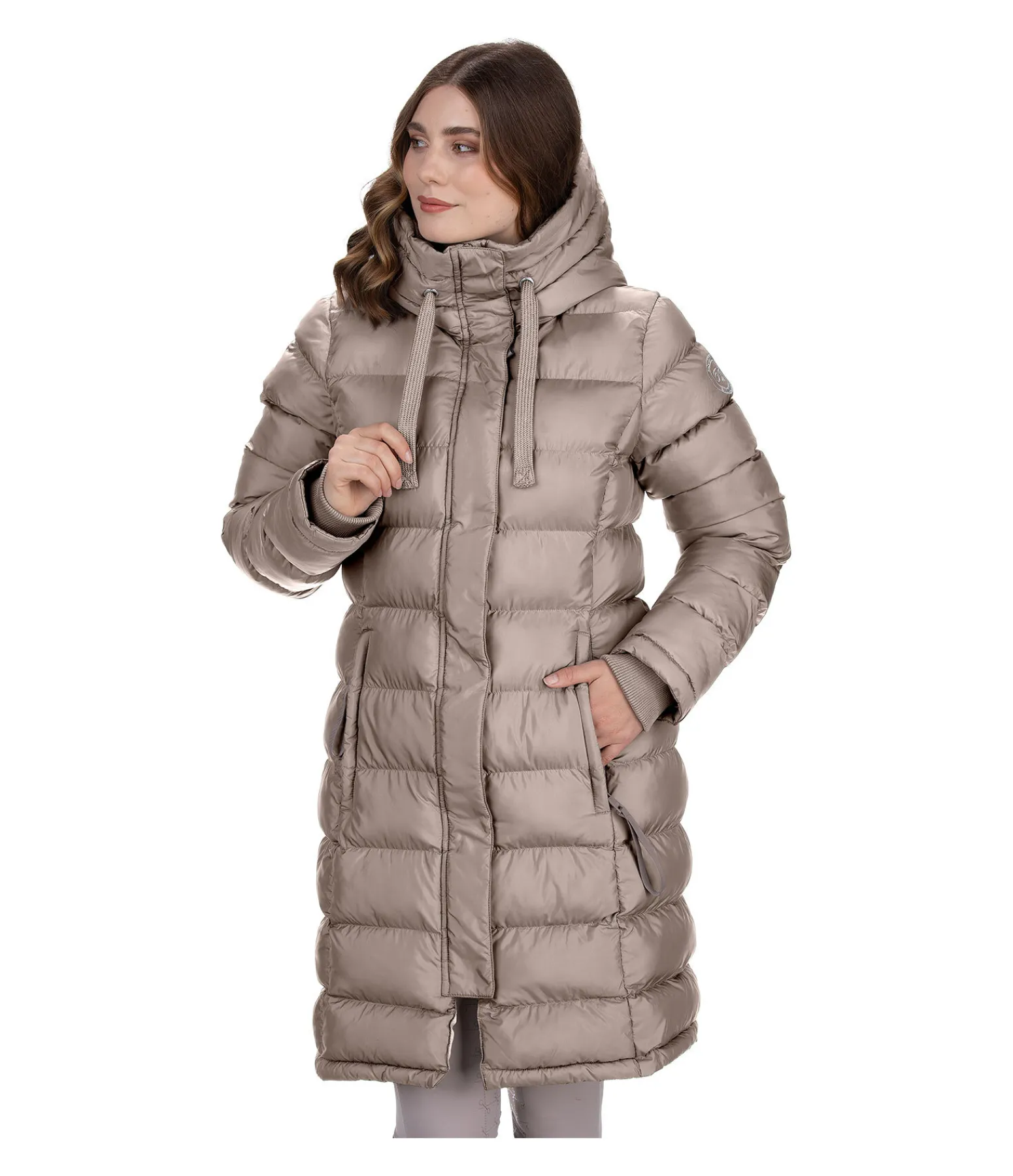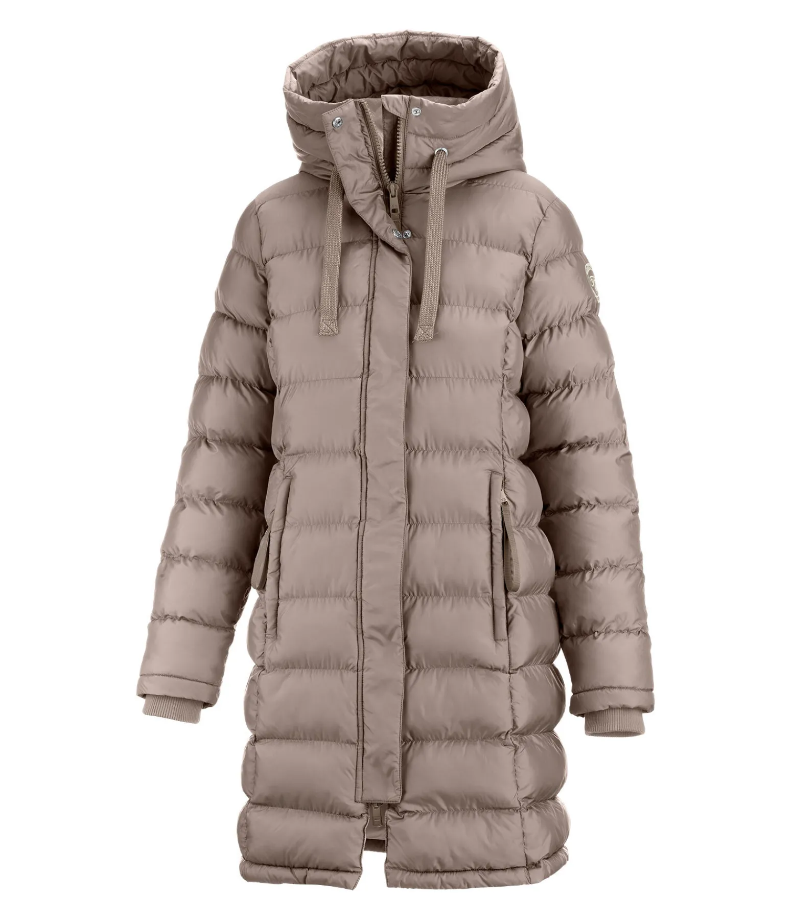Manteau tendance long et extra chaud. Garnissage doux imitation duvet. Col montant. Capuche réglable avec système d’attache dans le dos. Fermeture à glissière double sens dissimulée. Deux poches latérales zippées dissimulées et doublées de polaire douce. Finition bord-côte en bas des manches. Longue fente cavalière zippée à l’arrière. Broderie Felix Bühler sur la manche. 100 % polyester.