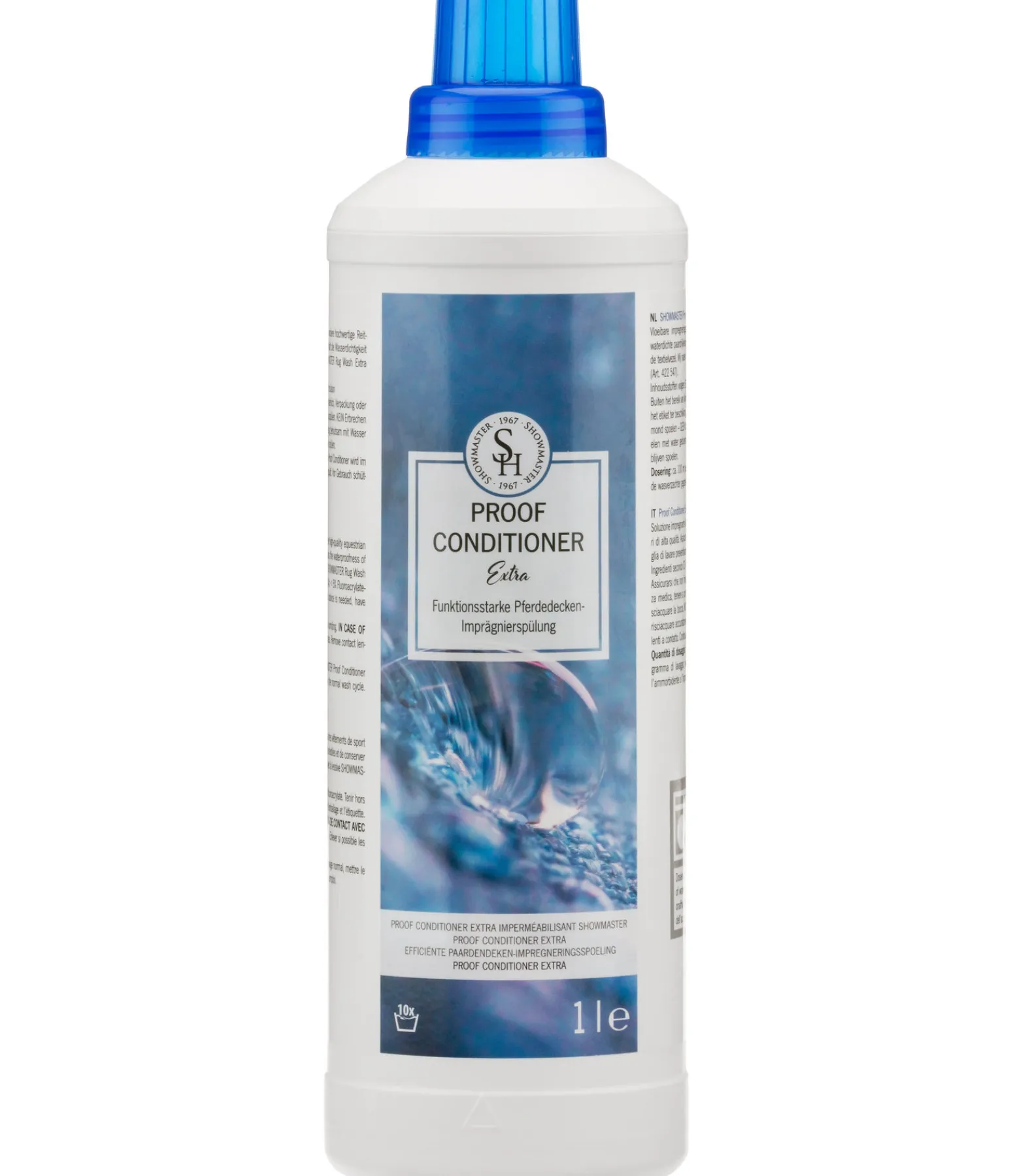 Soin imperméabilisant liquide pour préserver les fonctions imperméables et respirantes des couvertures d’extérieur ainsi que des vêtements techniques d’équitation. Protège les propriétés techniques des textiles et préserve leur imperméabilité. À ajouter avant le lavage dans le compartiment de la machine destiné à l’adoucissant. Nous recommandons d’utiliser la lessive SHOWMASTER Rug Wash Extra (réf. 422 547) pour un résultat optimal.