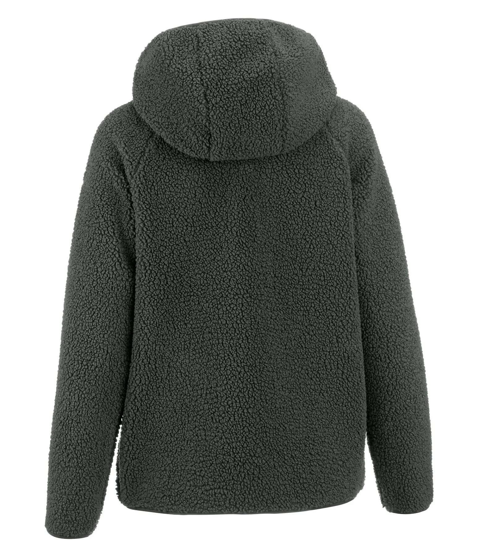 Sweat à capuche en tricot polaire Teddy douce. Patte de boutonnage avec boutons-pression de couleur contrastante. Deux poches latérales avec bouton-pression. Bord élastiqué de couleur contrastante sur le bas des manches, la capuche et l’ourlet. Étiquette STEEDS à l’ourlet. 100 % polyester.